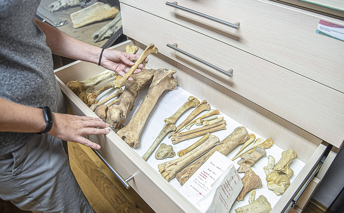 – A régészeti ásatásokról a legritkább esetben kerülnek elő ép, egész állatcsontok, leginkább töredékekből kell a szakembernek azonosítania, hogy azok milyen fajból származnak, milyen nemű, korú állatból. Ehhez van segítségünkre az összehasonlító gyűjtemény, amelyben egy adott csonttípusból igyekszünk minél többféle fajhoz tartozó darabot begyűjteni és egymás mellett tárolni, hogy amikor egy töredékkel a kezünkben keressük a választ a kérdésre, hogy vajon az milyen állatból származik, az ép darabokkal összehasonlítva jó eséllyel meg is kapjuk – részletezi Kelemen Imola.