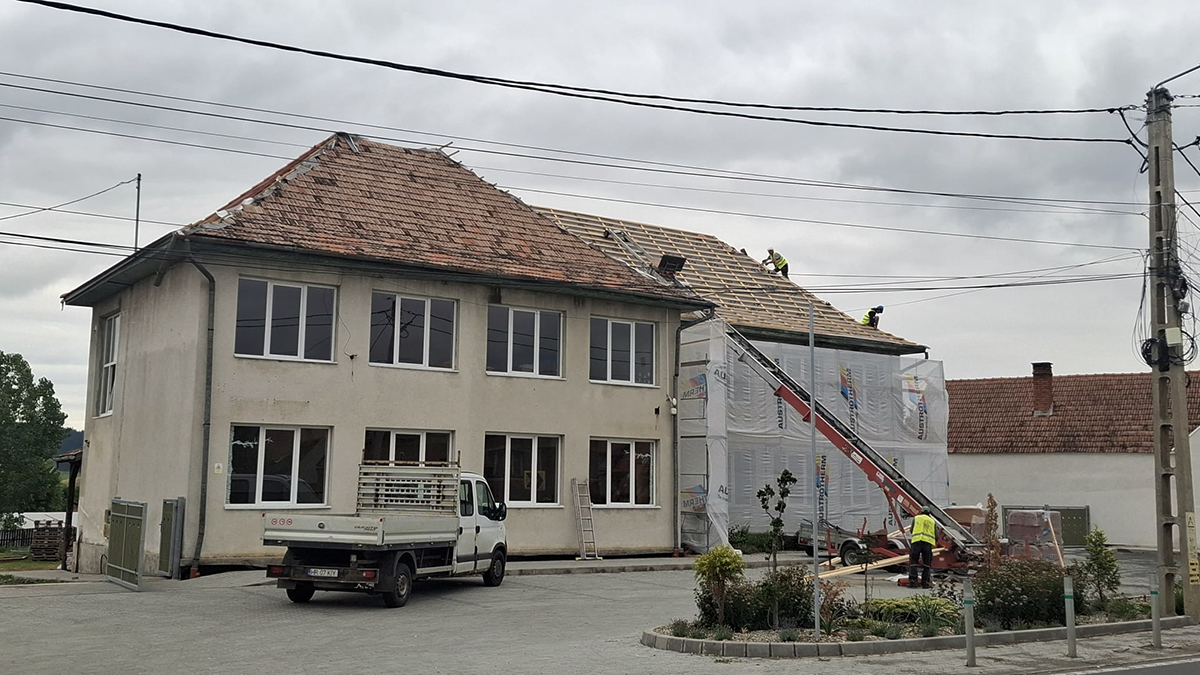 Újrafedik a csíkmadarasi óvodát: ahol szükséges, kicserélik a tartószerkezet elemeit is, majd új cserepek kerülnek az épületre.