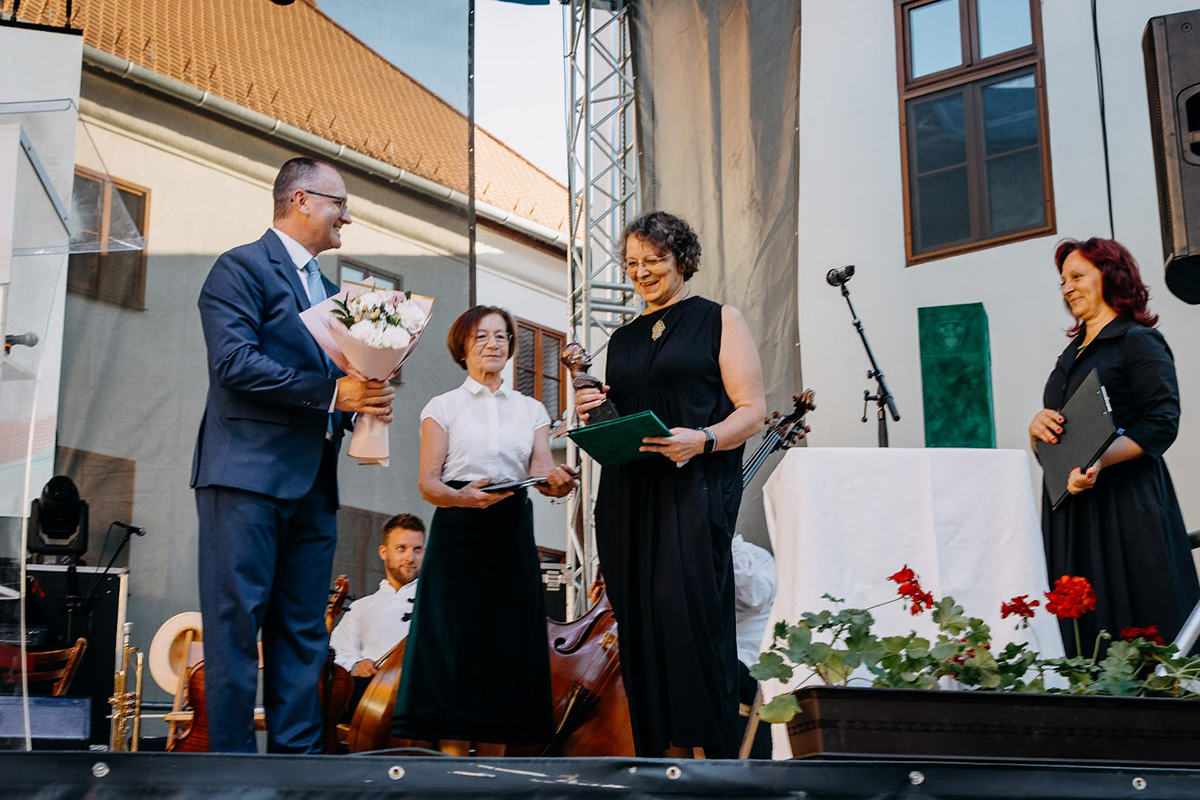 Pro Urbe díjjal tüntették ki Daczó Katalin újságírót, helytörténészt, lapunk volt munkatársát (k) az augusztus 20-i Szent István-napi megemlékezésen Csíkszeredában, a Mikó-vár udvarán.