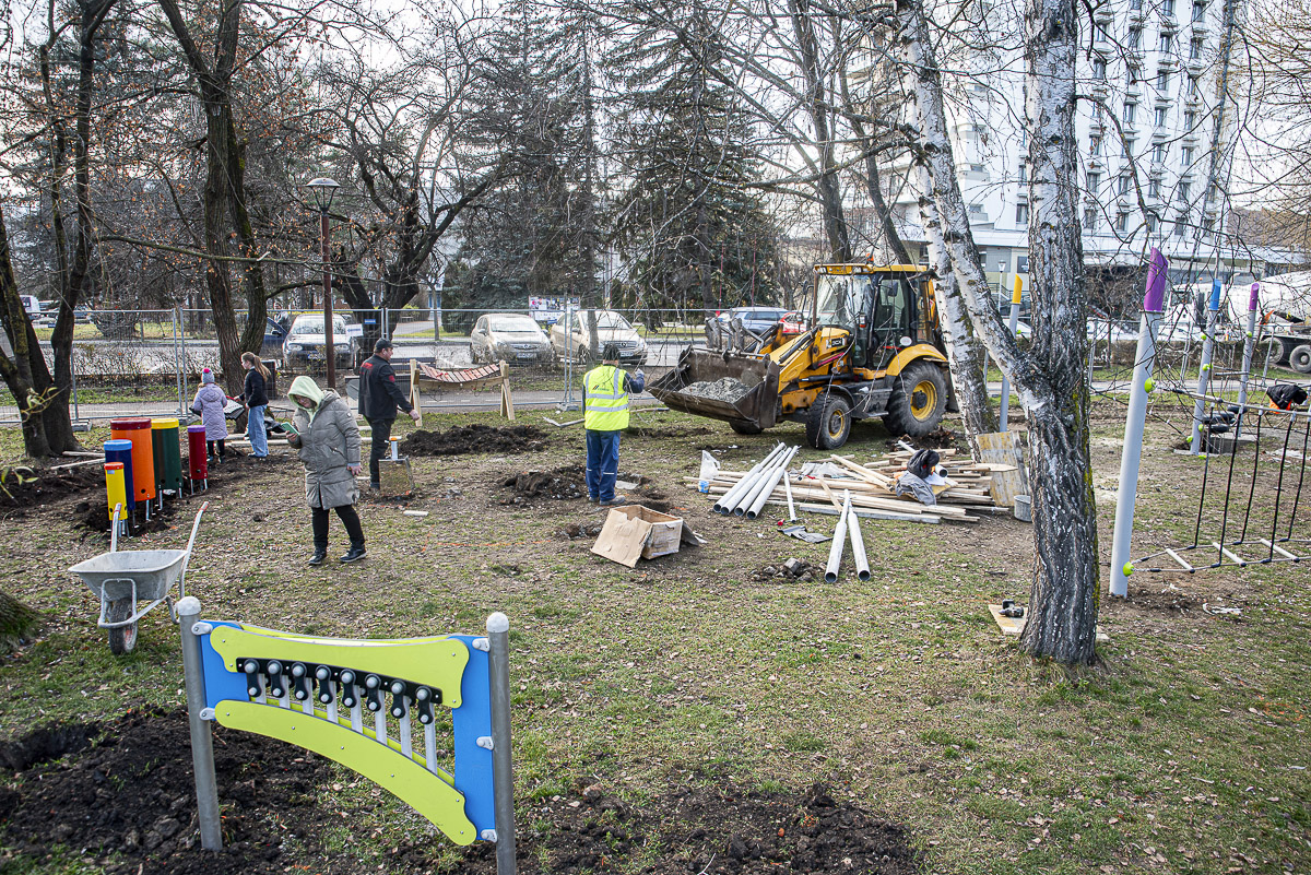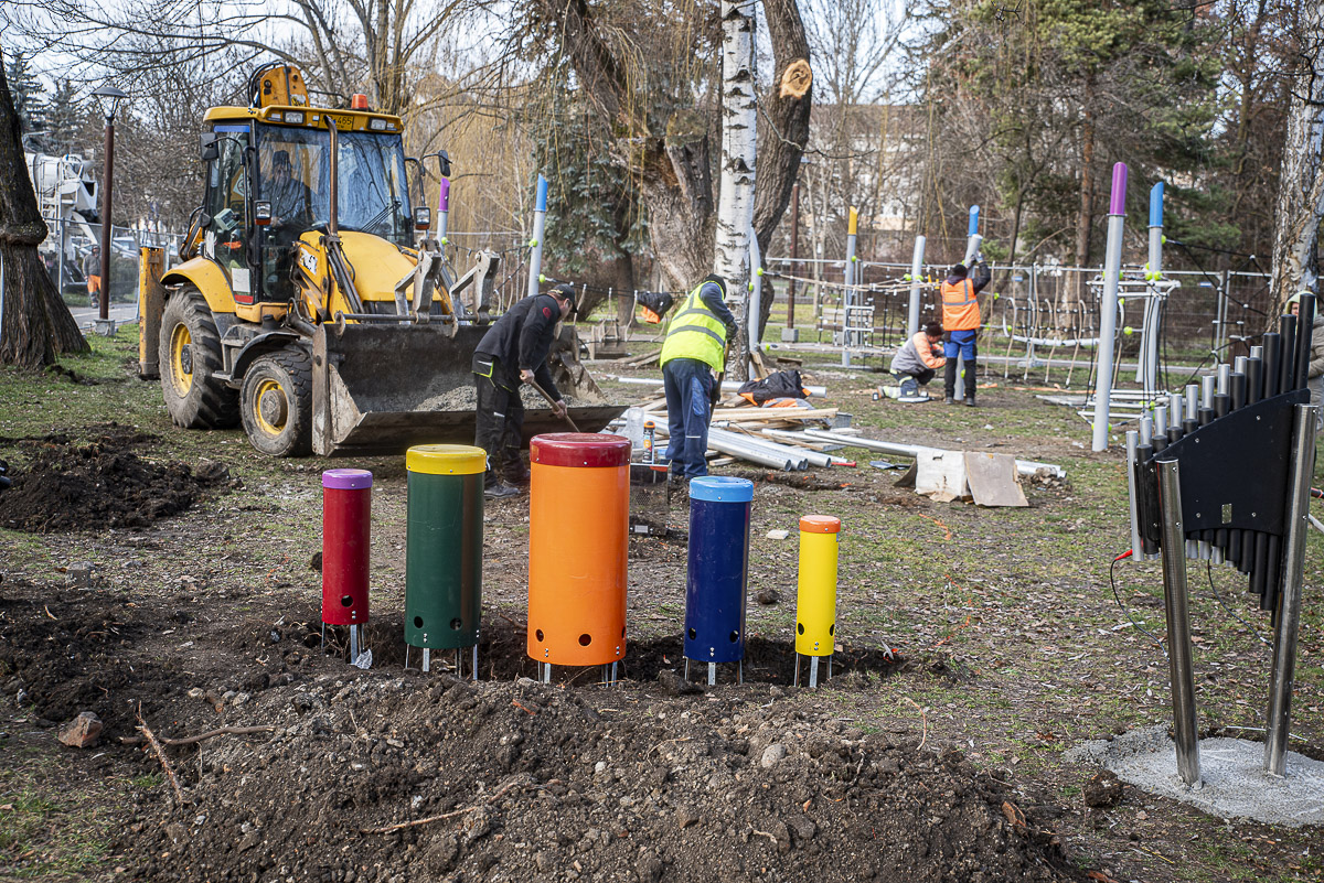 – A Központi park egy részét lezártuk, és elkezdődött a zenepark kialakítása, ahol összesen nyolc darab kültéri, kisgyermekeknek szánt ütőshangszer kap helyet. Ezenkívül bővítjük a játszótéri elemeket is egy csillag alakú kötélmászókával és két új, felnőttek és gyermekek által is használható hintával – tudtuk meg a részleteket a városrendezési osztály vezetőjétől. Lázár Péter szerint a munkálatok miatt valószínűleg hosszabb ideig marad lezárva az új játszótérrész, mivel az elemek kihelyezése után gumiszőnyeggel akarják beborítani a területet, ennek ütemét pedig nagyban meghatározza az időjárás. A zenepark kialakítására és a játszótér bővítésére hozzávetőlegesen 170 ezer lejt költ az önkormányzat.