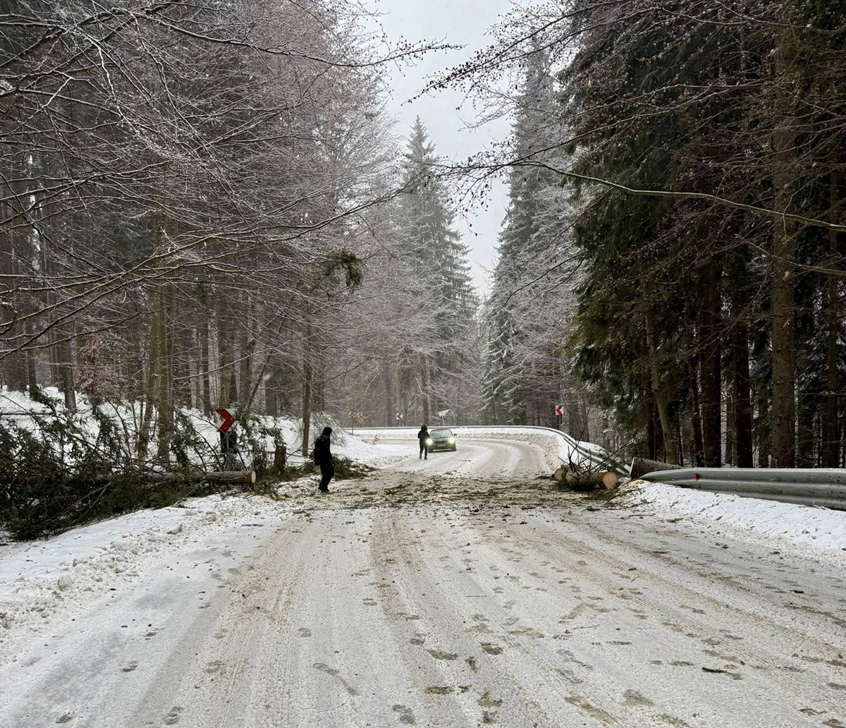 A viharos téli időjárás következtében két fenyőfa dőlt az úttestre csütörtökön, a délutáni órákban, a Hargitafürdő felé vezető DJ 138A jelzésű megyei úton, ami átmenetileg mindkét irányban akadályozta a forgalmat. Az ISU tájékoztatása szerint a helyszínre a csíkszeredai tűzoltóság egysége is kivonult, a kidőlt fákat azonban egy hargitafürdői lakos, valamint Csíkszereda Városháza hargitafürdői önkéntes tűzoltócsapata gyors közös beavatkozással eltávolította, erősítette meg Bors Béla alpolgármester. Személyi sérülés nem történt, ugyanakkor az út menti védőkorlát kisebb mértékben megrongálódott. A forgalom rövid időn belül mindkét irányban újraindult. A hatóságok óvatosságra intik az autósokat a téli útviszonyok miatt.