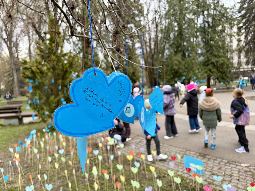 Kék papírszívek lepték el a csíkszeredai központi park fáit április 2-án, az autizmus világnapján. A Játékos Univerzum Egyesület „Csendben dobban a szív” elnevezésű eseményén gyerekek és felnőttek hívták fel a figyelmet az elfogadás fontosságára. Számos iskolai és óvodai csoport is csatlakozott.