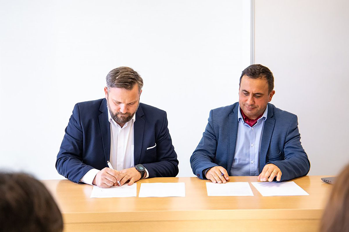 Együttműködési megállapodást írt alá a Csíki Vállalkozók Egyesülete (CsVE) és a Sapientia – EMTE Csíkszeredai Kara képviseletében Fazakas Szilárd elnök (b) és dr. Pap Levente dékán.