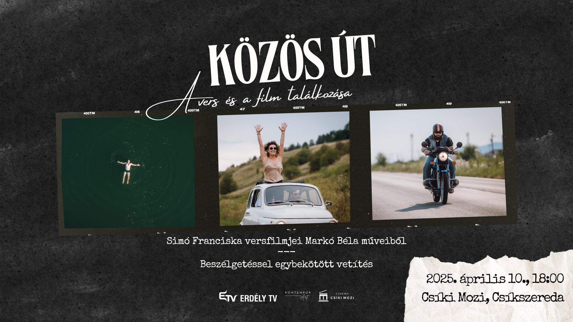 A versfilmeket készítő KontemporArt csapata legújabb projektjükként Markó Béla verseit hívják életre erdélyi színészek közreműködésével. A Közös út – A vers és a film találkozása című eseményen, melyet csütörtökön 18 órától szerveznek meg a Csíki Moziban, a költő műveiből készült versfilmek kerülnek vászonra (r.: Simó Franciska). A vetítést követően az alkotókkal és Markó Bélával Badics Petra beszélget a filmek készítésének folyamatáról, a versek filmes adaptációjának kihívásairól, és arról, hogyan egészíti ki egymást a költészet és a film világa. Az esemény ingyenes, de helyfoglalás szükséges az esemény közösségi oldalán található linken, a bilete.ro honlapon.