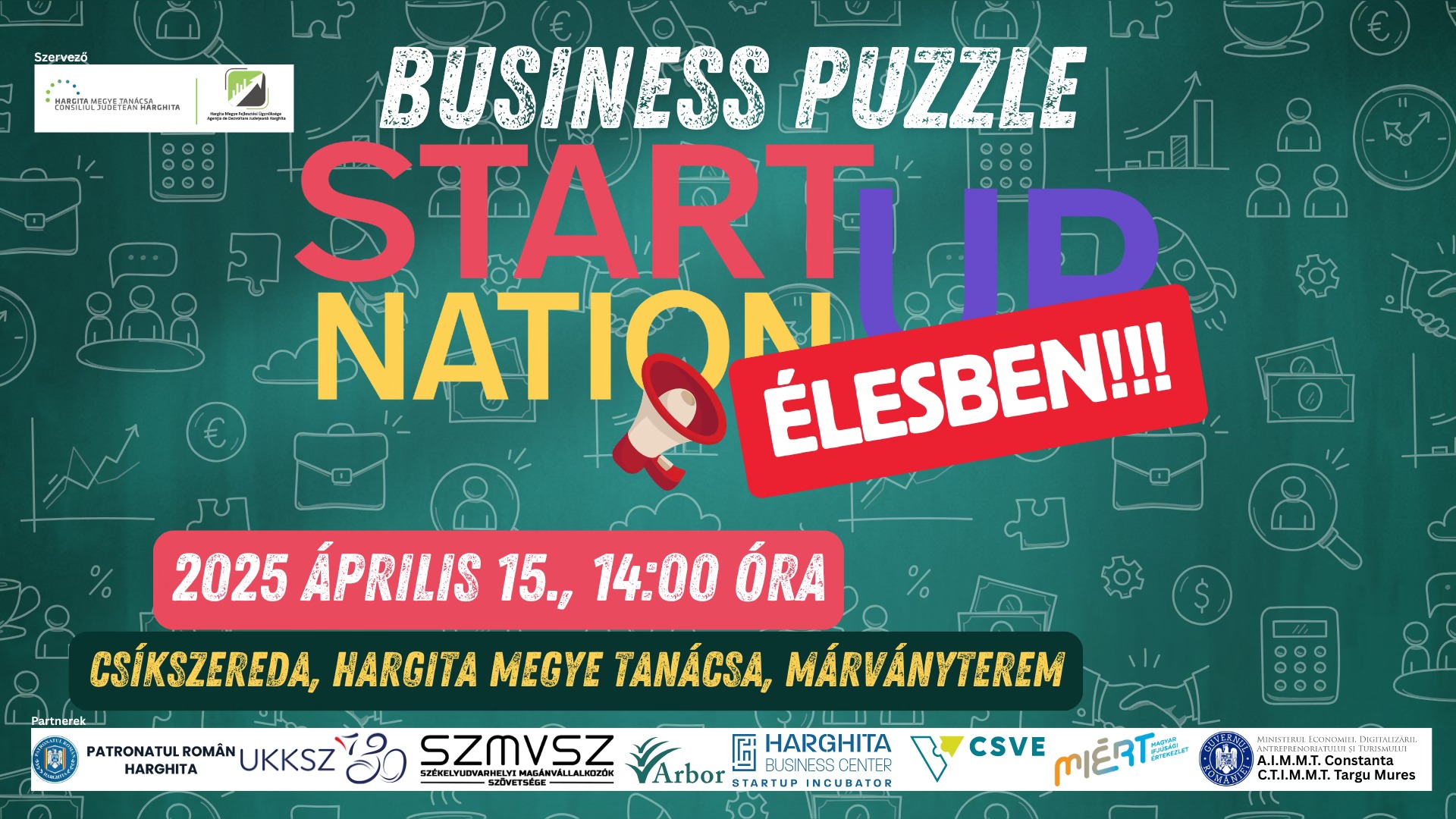 Pályázati felkészítőre hívják a leendő vállalkozókat Csíkszeredában. A Hargita Megye Fejlesztési Ügynöksége által életre hívott Business Puzzle – StartUp Nation Élesben című eseménnyel kapcsolatban pályázati tájékoztatót és konferenciát tartanak kedden 14 órától a csíkszeredai megyeháza márványtermében. Az eseményen panelbeszélgetéseket szerveznek, kérdezz-felelek lehetőség is lesz, szakértők, vállalkozók, pályázatírók osztják meg valós és hasznos tapasztalataikat, hogy a fiatalok és a kezdő vállalkozók felkészülten, tudatosan vághassanak bele saját vállalkozásuk elindításába. A belépés ingyenes. A konferenciáról még több részletet és programot az esemény közösségi oldalán találunk.