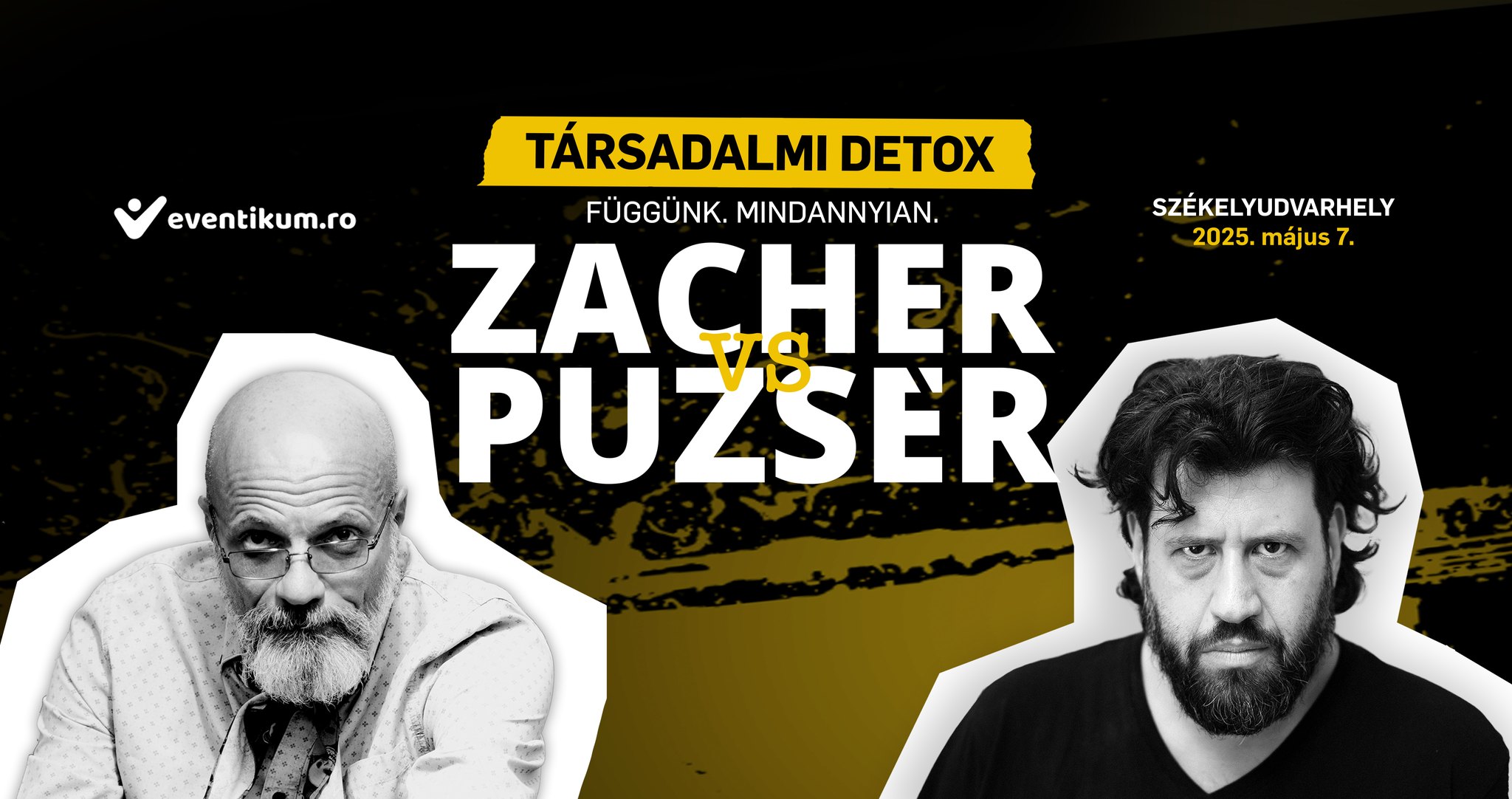 Mi történik, ha egy toxikológus, aki évtizedek óta látja a függőség legsötétebb arcait, összeül egy társadalomkritikával felfegyverzett gondolkodóval, aki kérdés nélkül belesétál a legkényesebb témákba? Dr. Zacher Gábor és Puzsér Róbert Székelyudvarhelyen, az Areo Events rendezvényteremben szerdán 19.30-tól ül egy asztalhoz, hogy megküzdjenek egy olyan kérdéssel, amit mindannyian ismerünk, mégis tabuként kezelünk: a függőséggel. A belépő ára 75 lej, megvásárolható az in-time.hu honlapon.