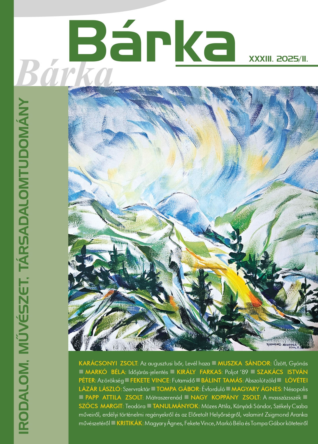 Az Erdély-fókuszú Bárka folyóirat idei második számát mutatják be a Székelyudvarhelyi Városi Könyvtár olvasótermében kedden 18 órakor. A rendezvényt dr. Simon Mária Tímea, a Művelődési Ház igazgatója nyitja meg, Elek Tibor főszerkesztő és Farkas Wellmann Éva főszerkesztő-helyettes moderálja. Fellépők: Bálint Tamás, Borsodi L. László, Muszka Sándor, Szakács István Péter. A rendezvény meghívottja Zsigmond Aranka képzőművész is, a lapszám illusztrátora, valamint jelen lesz Banner Zoltán, akinek tollából átfogó tanulmány is megjelent a művészetéről.