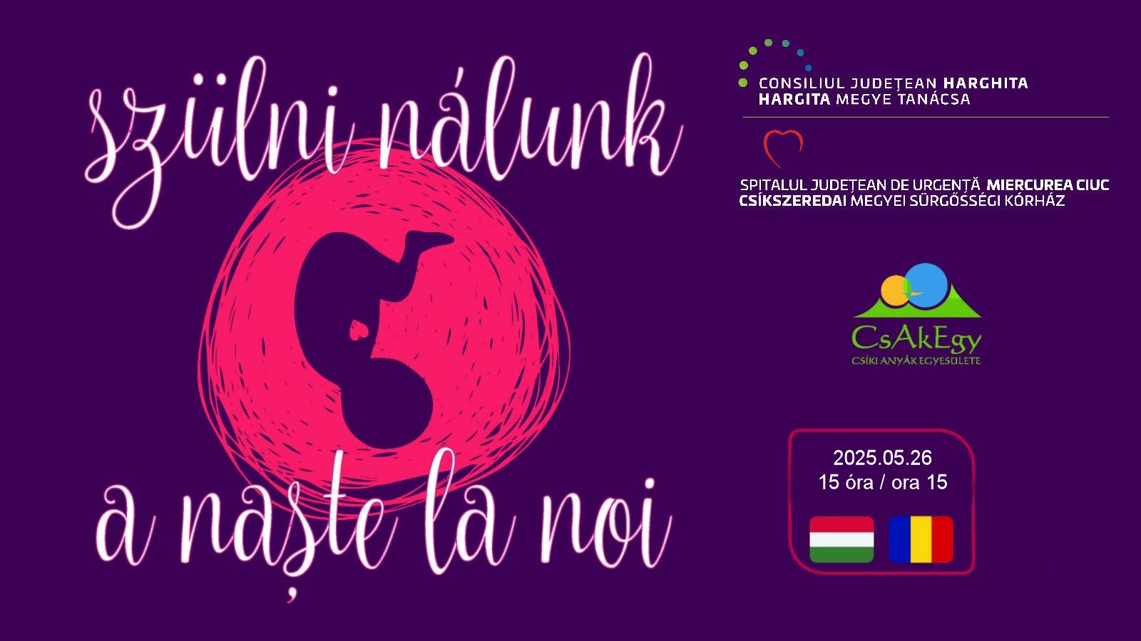 A Csíkszeredai Megyei Sürgősségi Kórház, partnerségben a Csíki Anyák Egyesületével, szülőszoba-látogatást szervez hétfőn 15 órától. A Szülni nálunk elnevezésű program során a kórház szülészeti és újszülöttgyógyászati osztályainak szakemberei (dr. Major-Rácz Tímea szülész-nőgyógyász, Tamás Mónika szülésznő, laktációs tanácsadó, dr. Cseh Zsuzsanna újszülöttgyógyász, Márk Katalin, az újszülöttgyógyászati osztály főasszisztense és Tulit-Incze Ágnes pszichológus) ismertetik a babát váró párokkal a legfontosabb tudnivalókat. A személyes találkozó helyszíne a kórház könyvtára lesz.