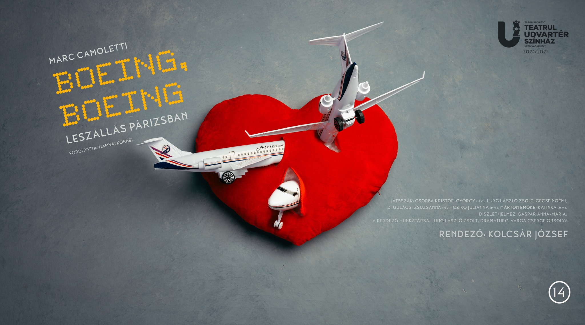 A kézdivásárhelyi Udvartér Színház Boeing, Boeing – Leszállás Párizsban című vígjátéka lesz látható a székelyudvarhelyi Tomcsa Sándor Színházban kedden 19 órától. A darab Marc Camoletti klasszikus műve, amely egy humoros és zűrzavaros szerelmi háromszögről szól. A történet középpontjában Bernard, egy fiatal és vonzó férfi áll, aki három különböző légitársaságnál dolgozó nővel tart fenn párhuzamos kapcsolatot. Bernard ügyesen manőverezik a három nő között, kihasználva a légitársaságok menetrendjét, hogy soha ne találkozzanak egymással. A darab feszültséggel teli és szórakoztató, a nézők szemtanúi lehetnek a szerelem, a hűtlenség és a barátság komikus ábrázolásának. A belépő ára 30 lej, a nyugdíjas- és diákjegy 25 lej, elővételben váltható online az in-time.hu oldalon vagy a színház jegypénztárában, továbbá a jegypénztárban hétköznapokon 11–14 és 15–17 óra között.