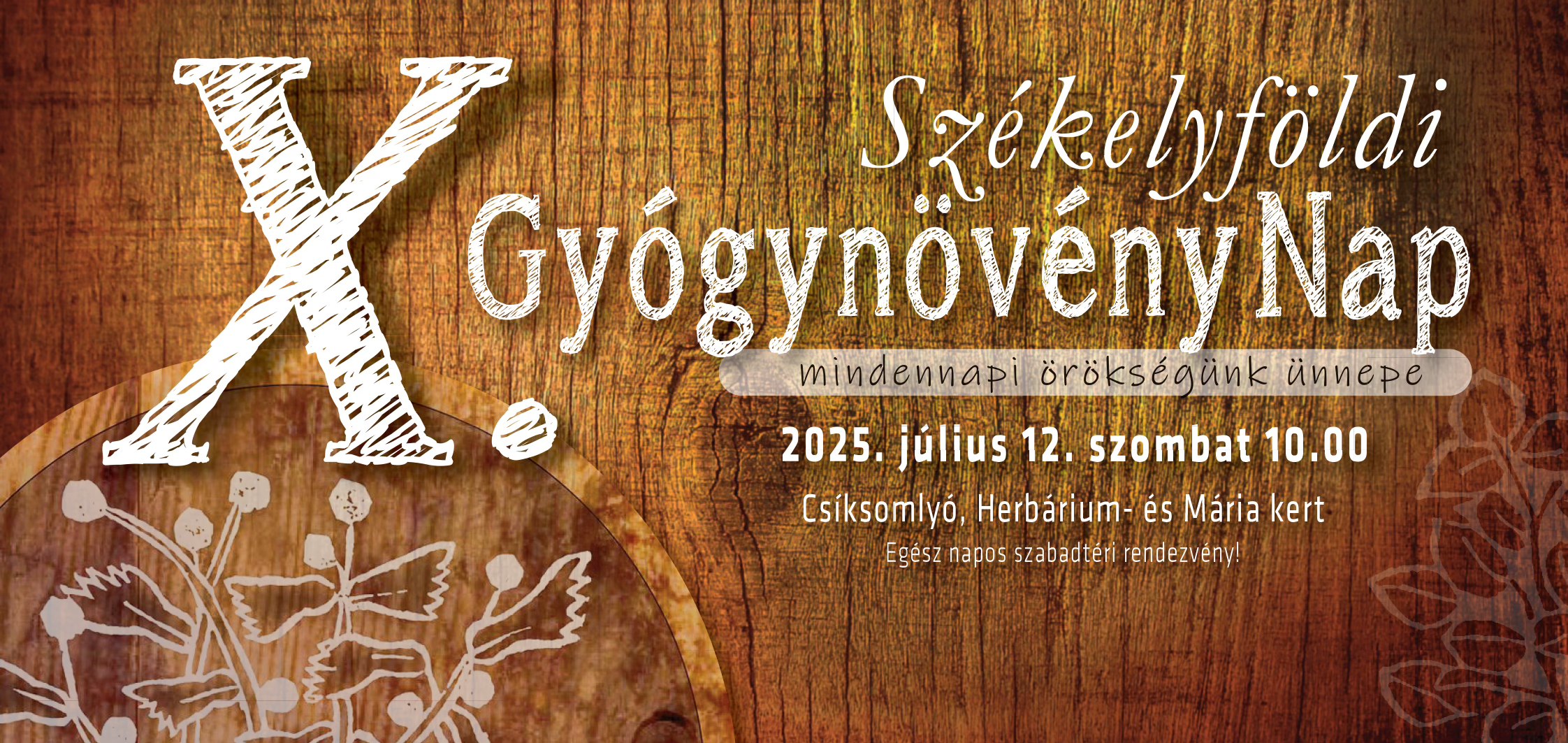 Szombaton 10 órától szervezik meg a X. Székelyföldi Gyógynövénynapot Csíksomlyón, a Kájoni Herbáriumkert és Mária-kertben. A szabadtéri rendezvényen a természet kincsei és a népi gyógyászat tudása találkozik, az érdeklődők szakértők és termelők előadásain vehetnek részt, amelyek által betekintést nyerhetnek a gyógynövények sokoldalú felhasználási lehetőségeibe. A nap során hálaadó szentmise, előadások, gyógynövény- és kézművesvásár, gyakorlati foglalkozások, talajvizsgálat, kiállítás, kopjafaavatás várja a résztvevőket. A belépés ingyenes. Szervező: a Kájoni Herbáriumkert és a Székely Herbárium Egyesület.
