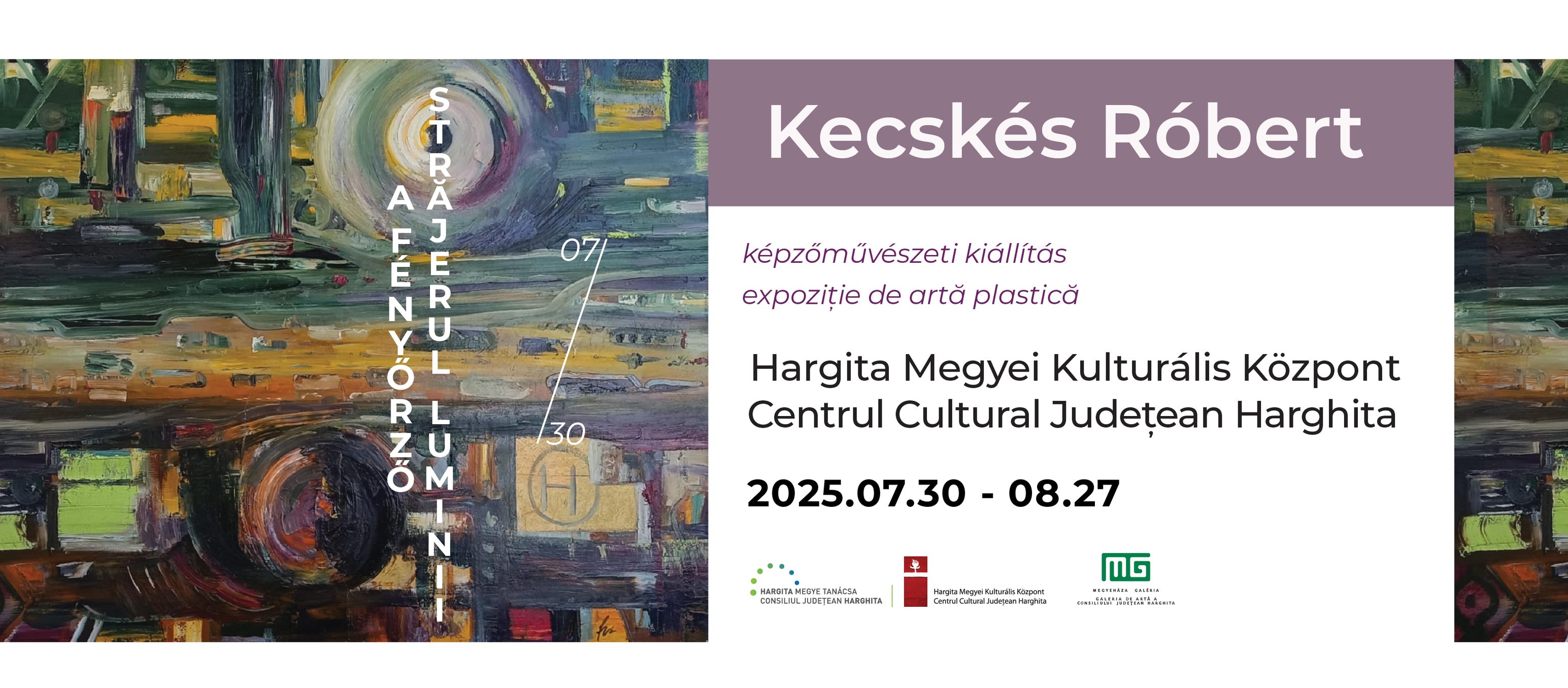 Szerdán 18 órától nyitják meg Kecskés Róbert A fényőrző című festészeti kiállítását Csíkszeredában, a Hargita Megyei Kulturális Központban (Mihai Eminescu utca 3/A szám). A Désen született festőművész, Székelyföldön nőtt fel, jelenleg a csíkszeredai Octavian Goga Főgimnázium, a Joannes Kájoni Szakközépiskola, valamint az újtusnádi Imets Fülöp Jákó Általános Iskola rajztanára. Kecskés Róbert munkáiban a homályos sziluettek olyan érzést keltenek, mintha egy régi emlék elevenedne meg előttünk – egy gyermekkori séta a városban, a magas épületek között, vagy egy kíváncsiságtól vezérelt kaland az elhagyott ipari negyed mélyén. A kiállításon egy álomszerű világba kapunk bepillantást a festőművész vizuális nyelvén keresztül. A belépés ingyenes. A tárlat augusztus 27-ig tekinthető meg. Szervezők: Hargita Megyei Kulturális Központ, Megyeháza Galéria, Hargita Megye Tanácsa.