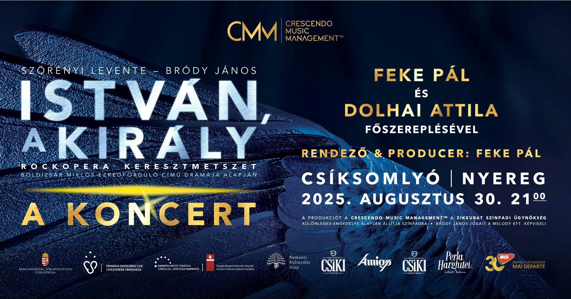 Magyarország Csíkszeredai Főkonzulátusa együttműködve Csíkszereda Megyei Jogú Város Önkormányzatával és Hargita Megye Tanácsával Szent István király államalapításának ünnepe alkalmából meghívta az István a király rockoperának egy koncert változatát a csíksomlyói nyeregbe. A legnépszerűbb magyar rockoperát Feke Pál Junior Prima és Artisjus-díjas magyar színész, énekes és Dolhai Attila Jászai Mari-díjas magyar színész, musicalénekes, operetténekes, érdemes művész főszereplésével tekintheti meg a közönség. A produkciót a Crescendo Music Orchestra közreműködésével, egyedülálló látványvilággal, technikai megoldásokkal, színpadi és díszletelemekkel, pirotechnikai effektekkel állítják színpadra. Az előadást a csíksomlyói nyeregben tartják augusztus 30-án, szombaton 21 órától. A koncerten való részvétel ingyenes.