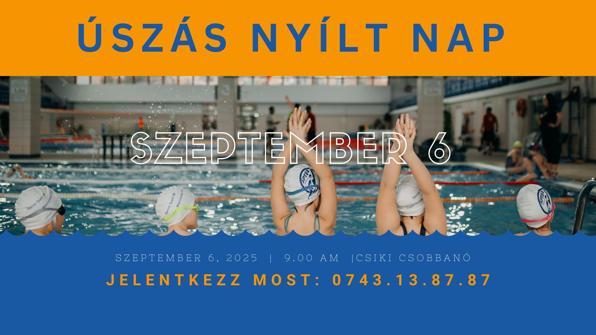 Nyílt napot szervez négy és fél éves, illetve annál nagyobb, úszni még nem vagy csak alig tudó gyermekek számára a csíkszeredai Sprint Team 88 csapata szombaton 9 órától a Csíki Csobbanóban. A részvétel ingyenes, de előzetes regisztrációhoz kötött, regisztrálni a 0743–138787-es telefonszámon lehet.