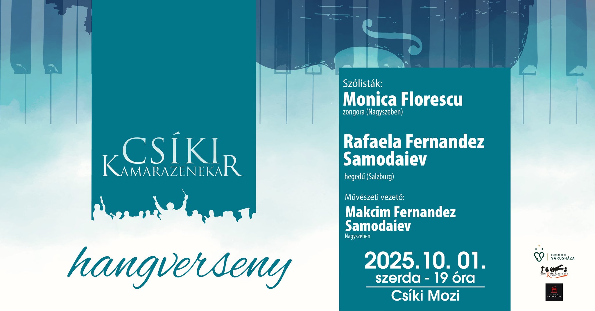 Ismét Csíkszeredába látogat a nagyszebeni Fernandez–Florescu házaspár és hegedűs leányuk. A Csíki Kamarazenekarral közösen kialakított műsorukat, amelyben romantikus hangvételű művek szerepelnek, szerdán 19 órától mutatják be a Csíki Moziban. Az est szólistái Monica Florescu nagyszebeni zongorista és Rafaela Fernandez Samodaiev salzburgi hegedűművész lesznek. A teljes árú jegy 30 lejbe, a kedvezményes pedig 20 lejbe kerül, melyeket a Csíki Mozi jegypénztárában lehet megvásárolni.