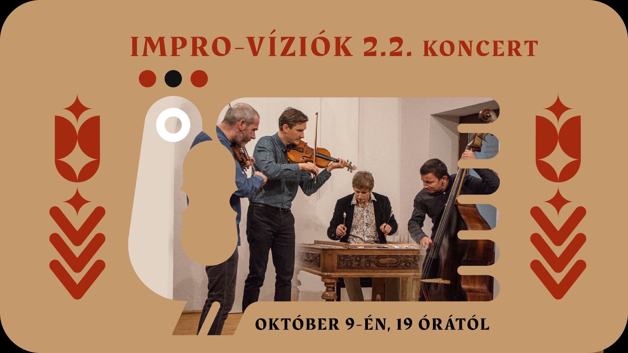 Az IMPRO-VÍZIÓK 2.2 saját zenei repertoárú zenekar, amely népzenét, klasszikus és jazzmuzsikát olvaszt egybe egyedi világzenei hangzattá. A hegedűn, bőgőn és cimbalmon játszó zenekar nagy hangsúlyt helyez az improvizációra és a meglévő zenei témák szabad kezelésére, csütörtökön 19 órától pedig a csíkszeredai Zengő Térben koncertezik. A belépő ára 35 lej.