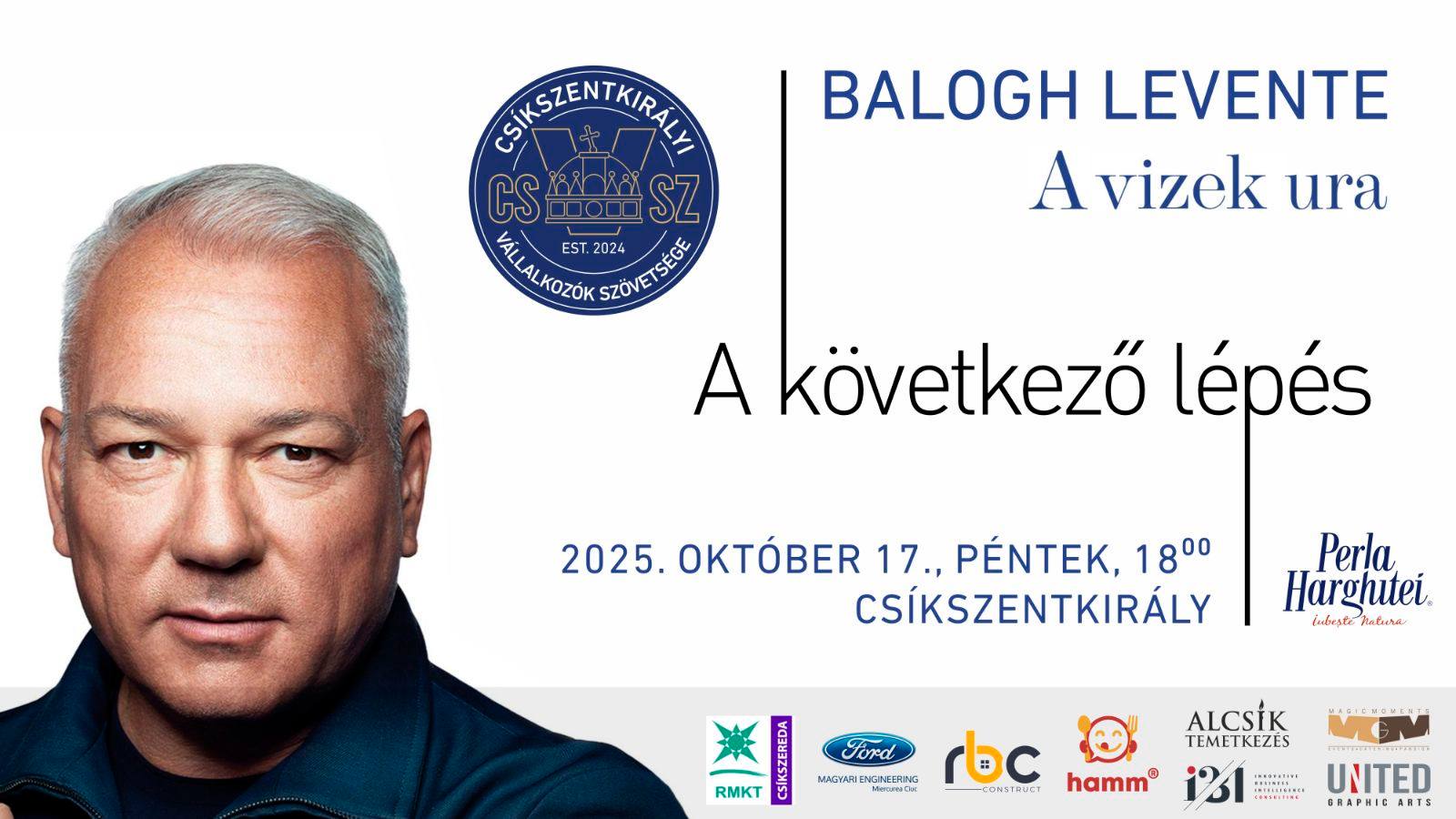 A csíkszentkirályi Magic Moments rendezvénysátorban tart előadást Balogh Levente, a Szentkirályi Ásványvíz alapítója és tulajdonosa, a Cápák között veterán cápája pénteken 18 órától. A vizek ura, a következő lépés című eseményen szó lesz vállalkozásindításról és márkázásról, piacstratégiáról, és az előadás tele lesz olyan gondolatokkal, amelyek a magánéletben is segíthetnek kitartóbbá, határozottabbá válni. A helyek száma korlátozott, jegyet a Hamm telefonos alkalmazásban lehet vásárolni, online fizetés után a jegyet üzenetben továbbítják.