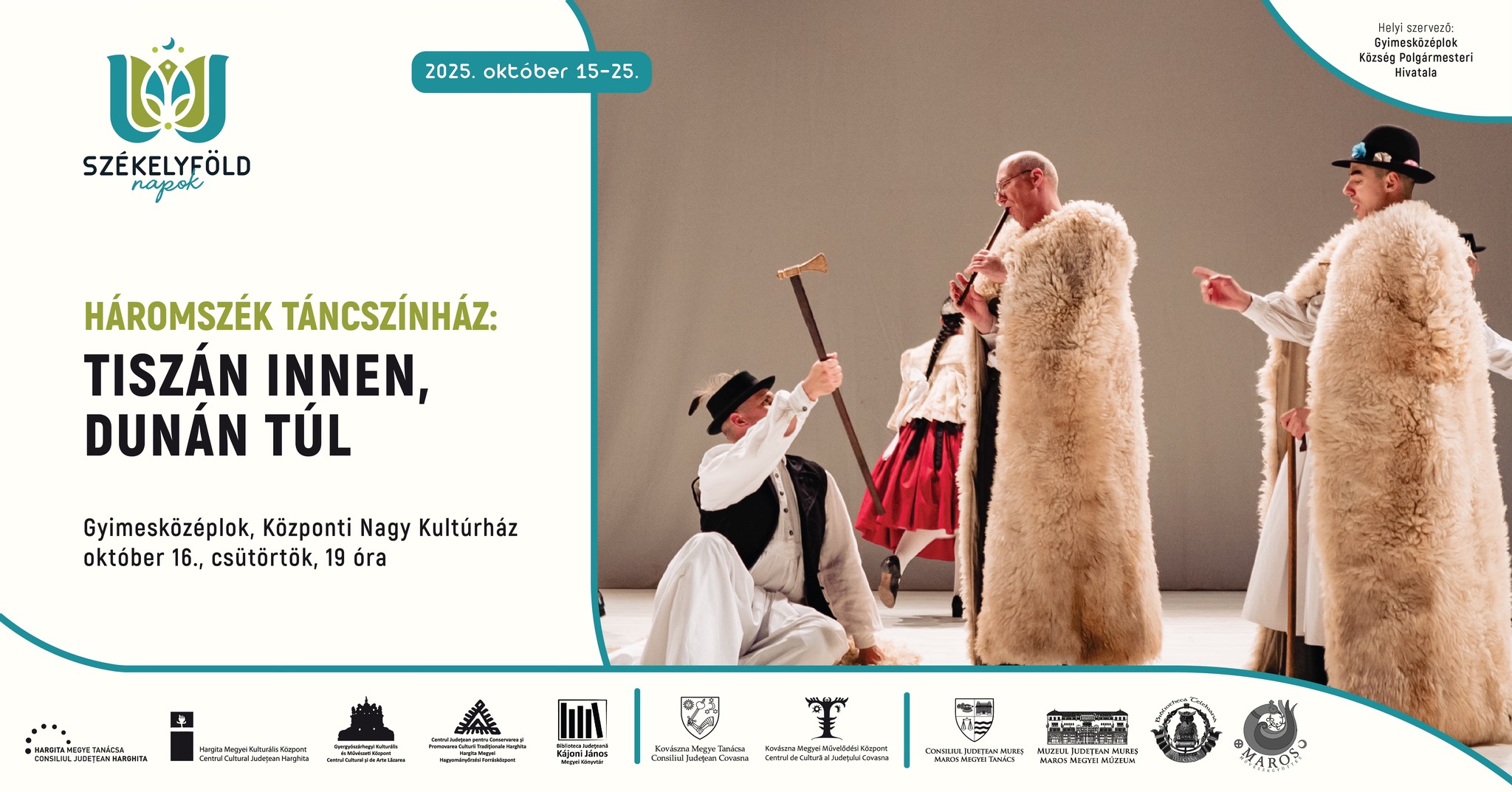 A Székelyföld Napok részként csütörtökön 19 órától a gyimesközéploki Központi Nagy Kultúrházban bemutatják a Háromszék Táncszínház Tiszán innen, Dunán túl című folklórelőadását. A talpalávalót a Heveder zenekar szolgáltatja, kiknek játékában a dinamikus ritmusok és az érzékeny dallamok egymásba fonódnak, hogy egy olyan zenei utazást teremtsenek, amely a hallgatót magával ragadja és elrepíti a valamikori Nagy-Magyarország hangulatos tájaira.
