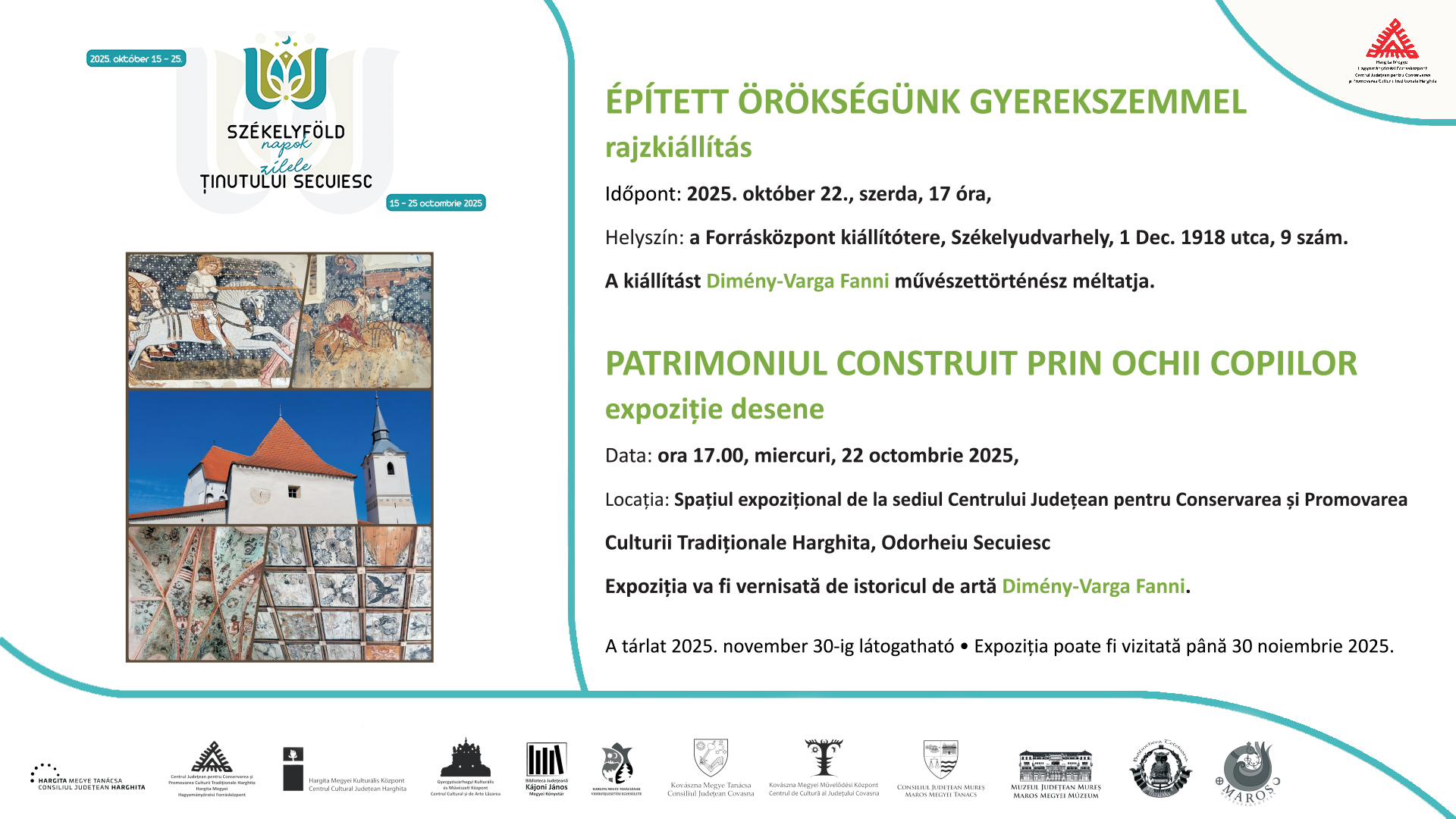 Gyermekrajzokból összeállított kiállítás nyílik Székelyudvarhelyen, a Forrásközpont székhelyén szerdán 17 órakor. A bemutatott alkotások a szeptemberi Kulturális örökségünk gyerekszemmel tanulmányút eredményeként készültek, ahol a diákok a megye három régiójából – Udvarhelyszékről, Gyergyószékről és Csíkszékről – Szent László nyomában járva Udvarhelyszék műemlék templomait látogatták meg. A november 30-ig látogatható tárlatot Dimény-Varga Fanni művészettörténész méltatja, a következő állomások Gyergyószentmiklós és Csíkszereda lesznek. Az esemény a XVI. Székelyföld Napok keretében valósul meg.