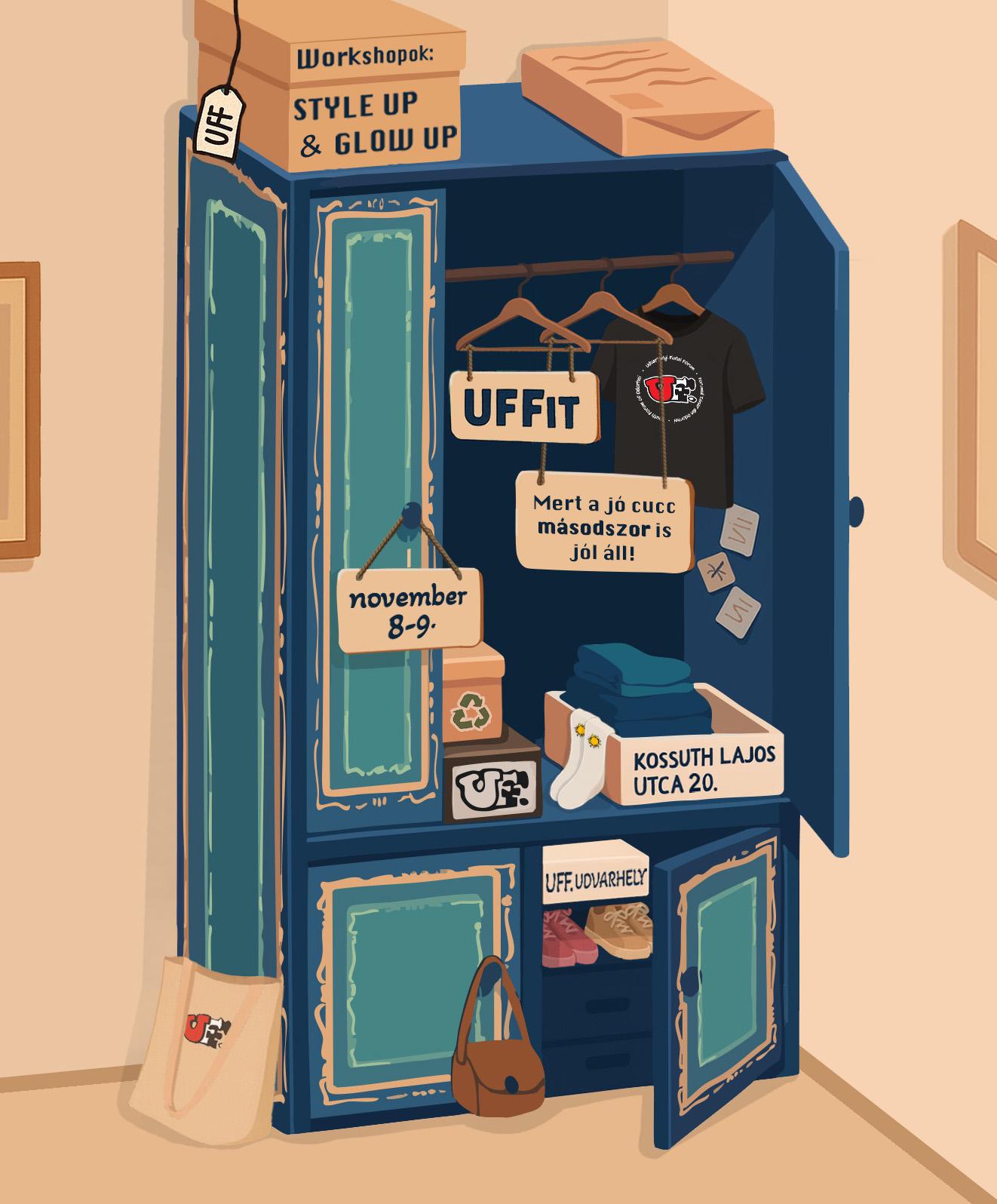 UFFit címmel szerez gardróbvásárt szombaton 14 órától kezdődően és vasárnap a székelyudvarhelyi Siculus Ifjúsági Házban az Udvarhelyi Fiatal Fórum (UFF). Az eseményen az érdeklődők már nem hordott, jó állapotú ruháiknak, cipőiknek, kiegészítőiknek adhatnak új esélyt – akár eladással, akár csere útján, emellett a szervezők a hétvége során különféle, ingyenes műhelymunkákkal is készülnek. „Árusnak” jelentkezni az esemény közösségi oldalán található űrlap kitöltésével lehet.