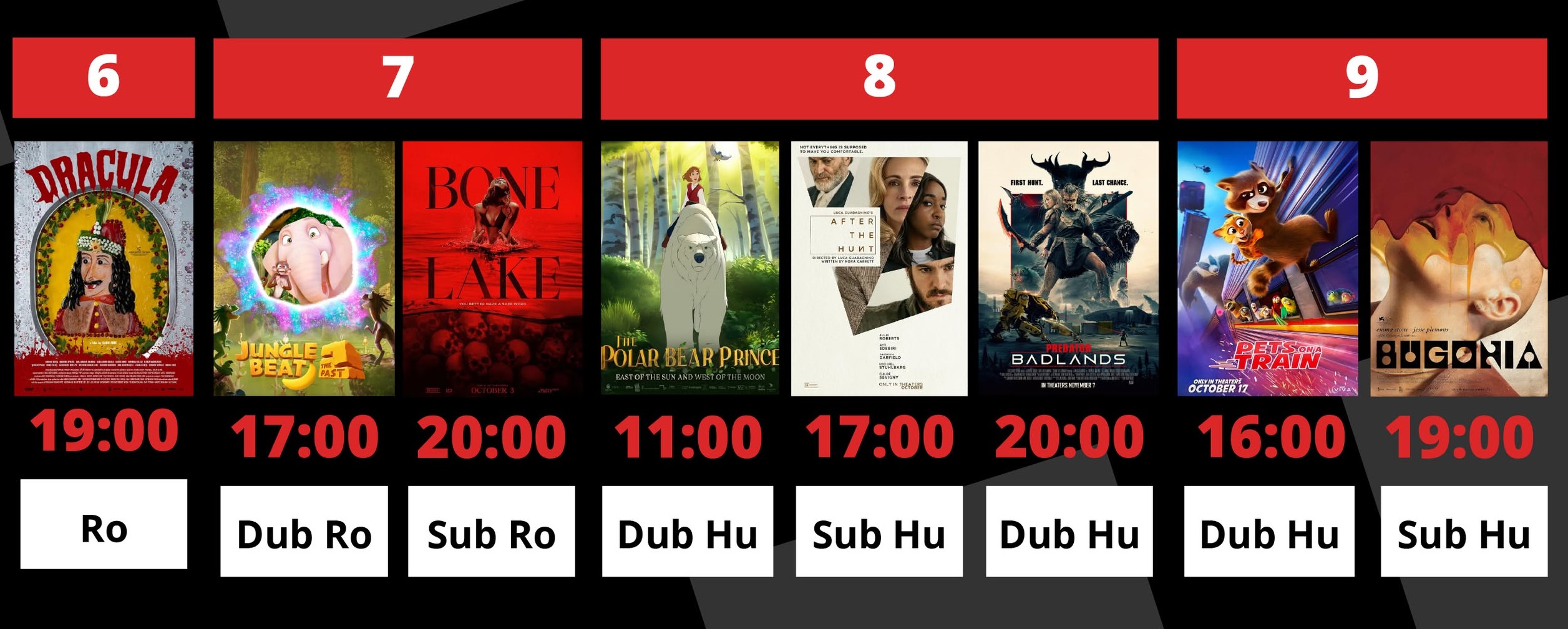 Pénteken 17 órától a Jungle Beat 2: The Past lesz látható román szinkronnal, 20-tól pedig a Bone Lake című horrorfilmet vetítik angol (eredeti) nyelven, román felirattal.