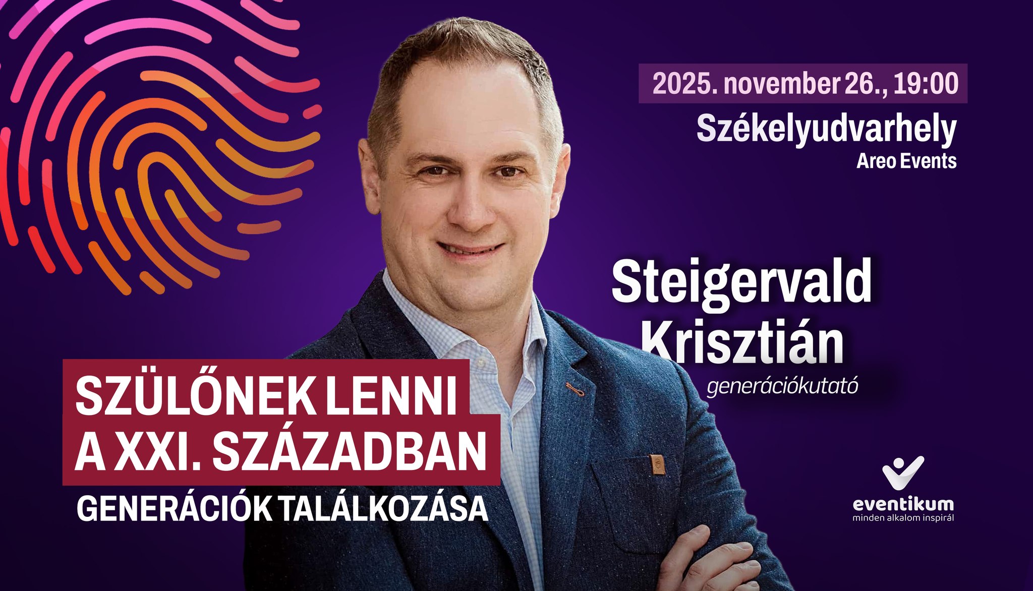 Szülőnek lenni a 21. században egészen más kihívásokat jelent, mint korábban: a technológia, a folyamatosan változó világ és a generációs különbségek új kérdéseket vetnek fel a nevelésben. Hogyan lehet egyszerre szeretetteljes, következetes és jelen lévő szülőnek lenni ebben a gyors tempójú környezetben? – erre a kérdésre is választ ad Steigervald Krisztián generációkutató a Szülőnek lenni a XXI. században című előadásában, amelyet Székelyudvarhelyen, az Areo Events rendezvényteremben tartanak szerdán 19 órától. A belépő ára 70 lej, megvásárolható az in-time.hu honlapon.