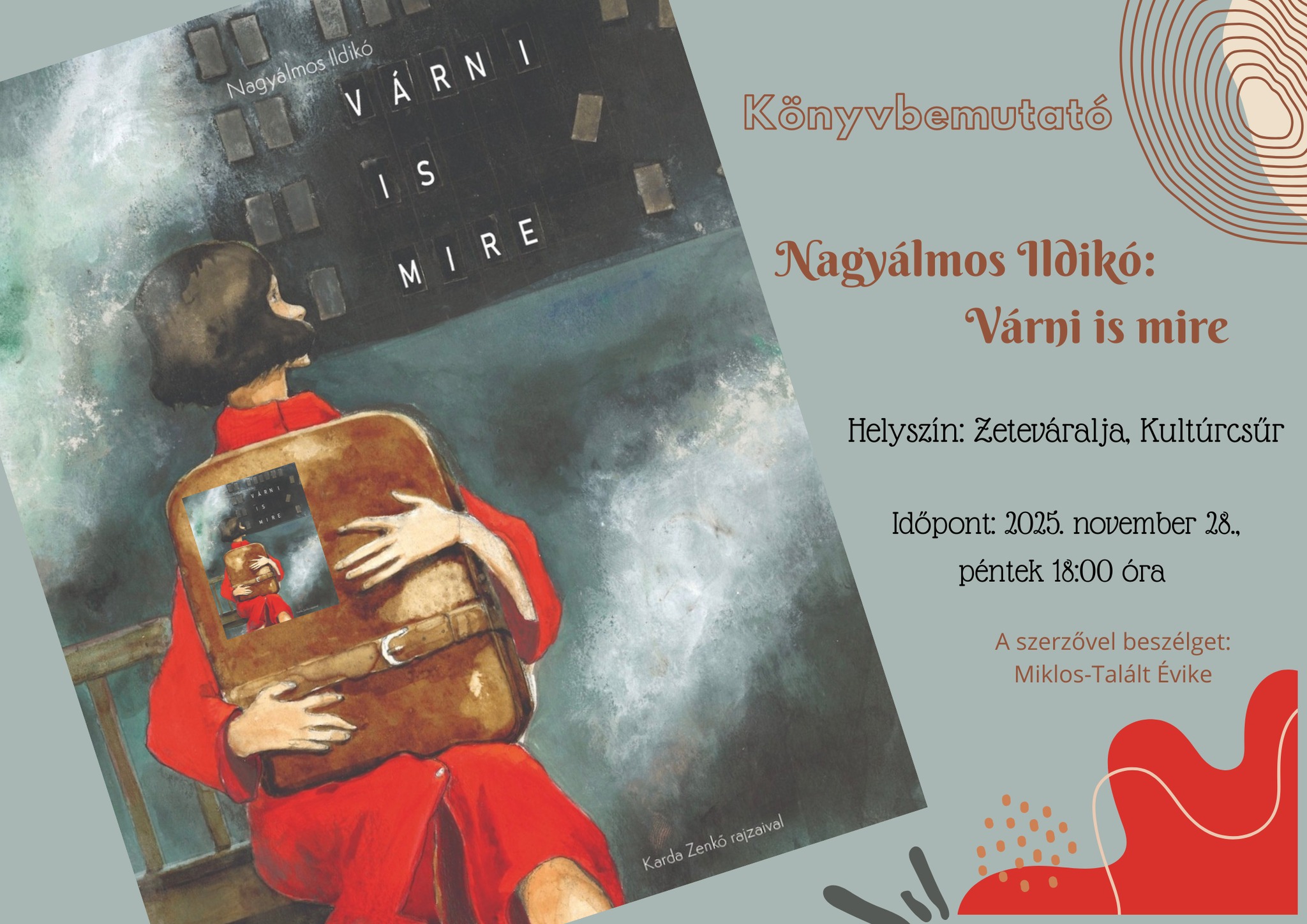 Nagyálmos Ildikó Várni is mire című verseskötetét mutatják be pénteken 18 órától a zeteváraljai Kultúrcsűrben. A kötet a Hargita Népe Lapkiadó kiadásában jelent meg, Muszka Sándor szerkesztette és Karda Zenkő illusztrálta. A szerzővel Miklos-Talált Évike beszélget.