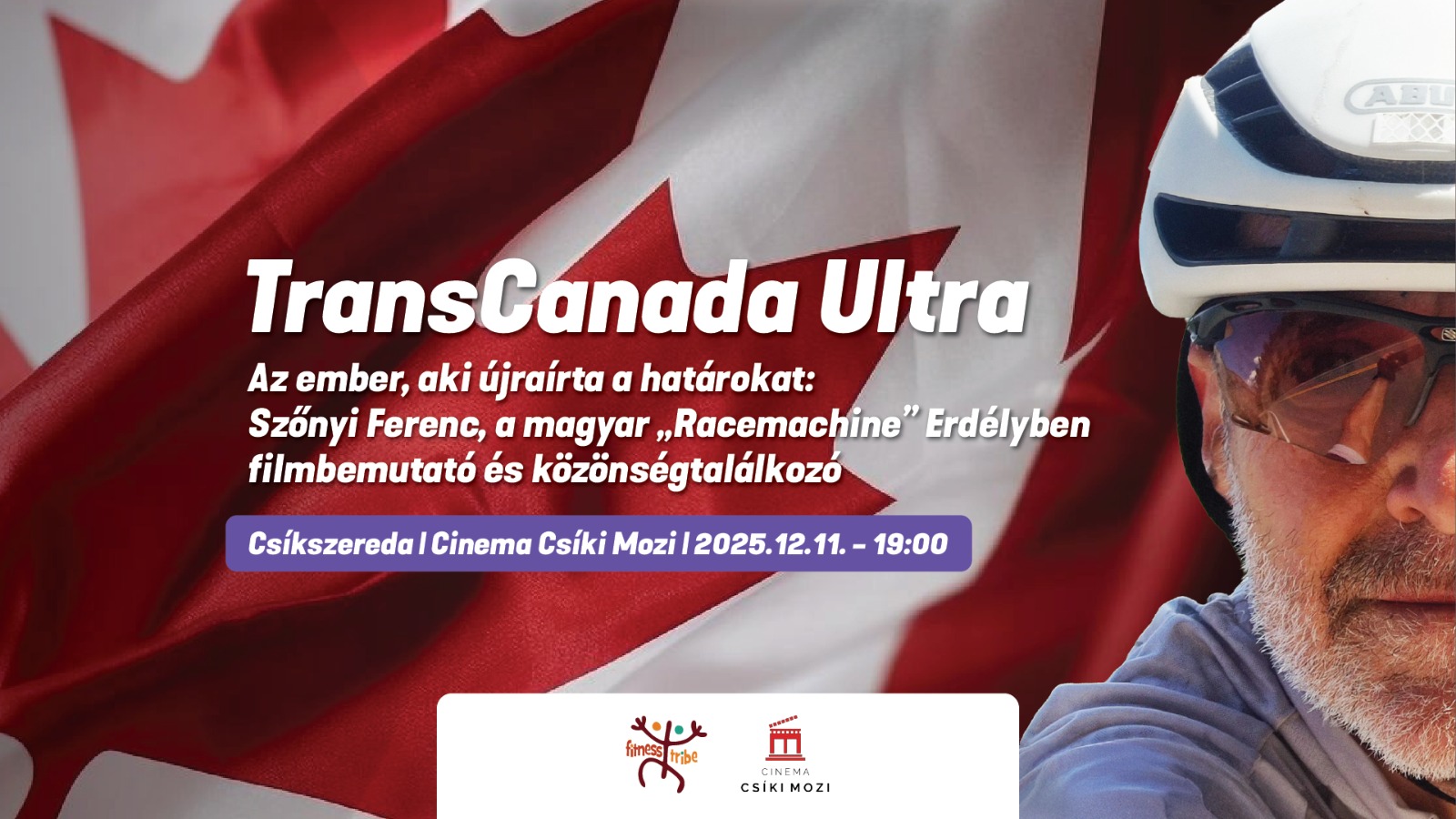A világ egyik legkitartóbb embere, Szőnyi Ferenc, a komáromi Vasember tart előadást Csíkszeredában, a Csíki Moziban csütörtökön 19 órától, ahol elmeséli élete egyik legnagyobb kalandját. Az eseményen levetítik a TransCanada Ultra című dokumentumfilmet, amely Szőnyi Ferenc elképesztő, 12 500 kilométeres kanadai küldetését mutatja be, amelyet 45 nap, 3 óra és 14 perc alatt teljesített, ezzel pedig világrekordot döntött. A vetítés után személyesen mesél a kulisszatitkokról, a nehézségekről, a belső küzdelmekről és arról, mit tanít az embernek 12 500 kilométernyi magány, fájdalom és győzelem. A belépő ára 40 lej, elővételben megvásárolható a Csíki Mozi jegypénztárában.