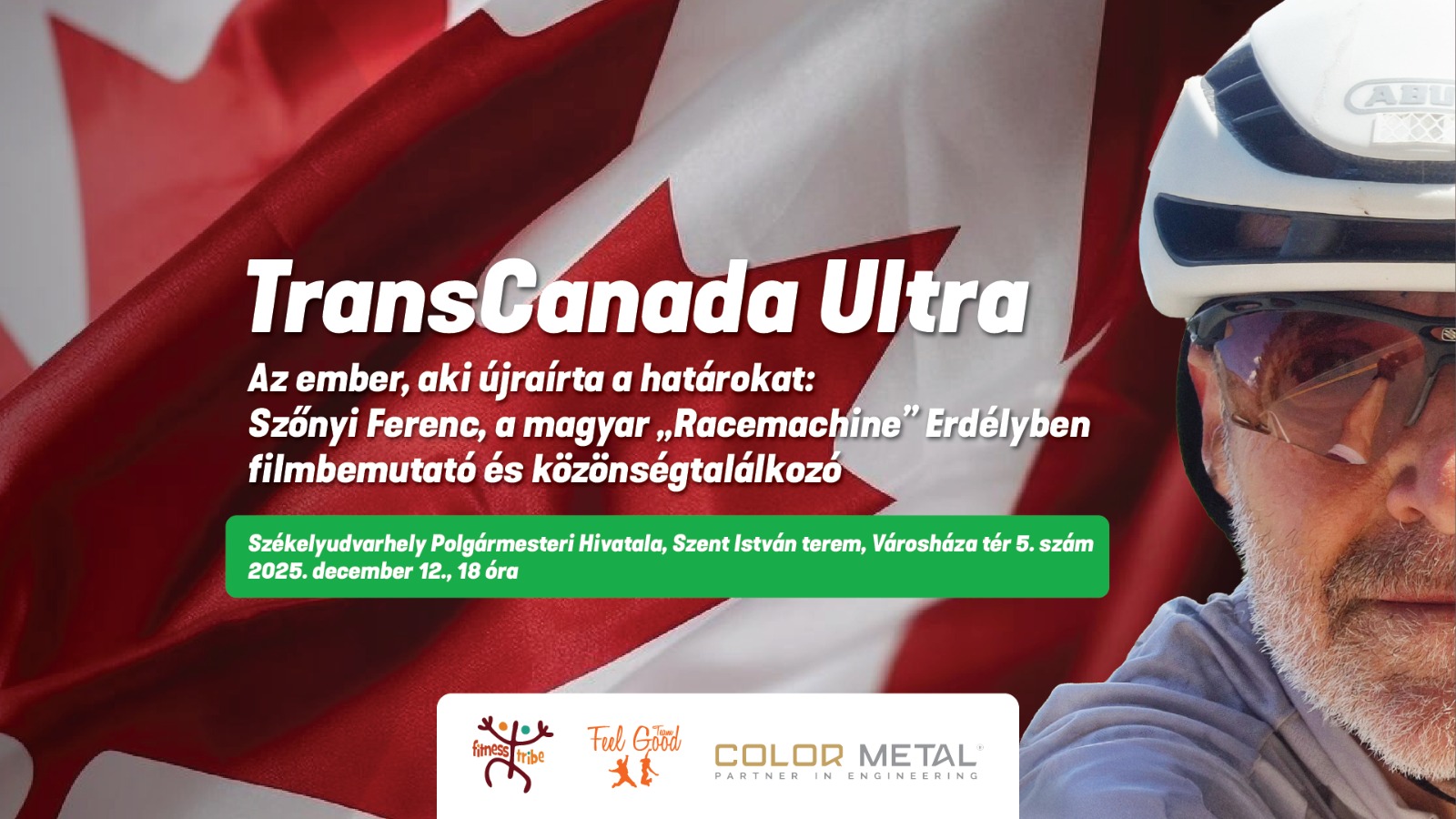 A világ egyik legkitartóbb embere, Szőnyi Ferenc, a komáromi Vasember tart előadást Székelyudvarhelyen, a polgármesteri hivatal Szent István termében pénteken 18 órától, ahol elmeséli élete egyik legnagyobb kalandját. Az eseményen levetítik a TransCanada Ultra című dokumentumfilmet, amely Szőnyi Ferenc elképesztő, 12 500 kilométeres kanadai küldetését mutatja be, amelyet 45 nap, 3 óra és 14 perc alatt teljesített, ezzel pedig világrekordot döntött. A vetítés után mesél kulisszatitkokról, a nehézségekről, a belső küzdelmekről és arról, mit tanít az embernek 12 500 kilométernyi magány, fájdalom és győzelem, majd a The Racemachine című életrajzi könyvének megvásárlására és dedikáltatására is lehetőség nyílik. Jegyek a Tomcsa Sándor Színház jegypénztárában és a Bagolyvár Könyvesboltban válthatók készpénzzel.