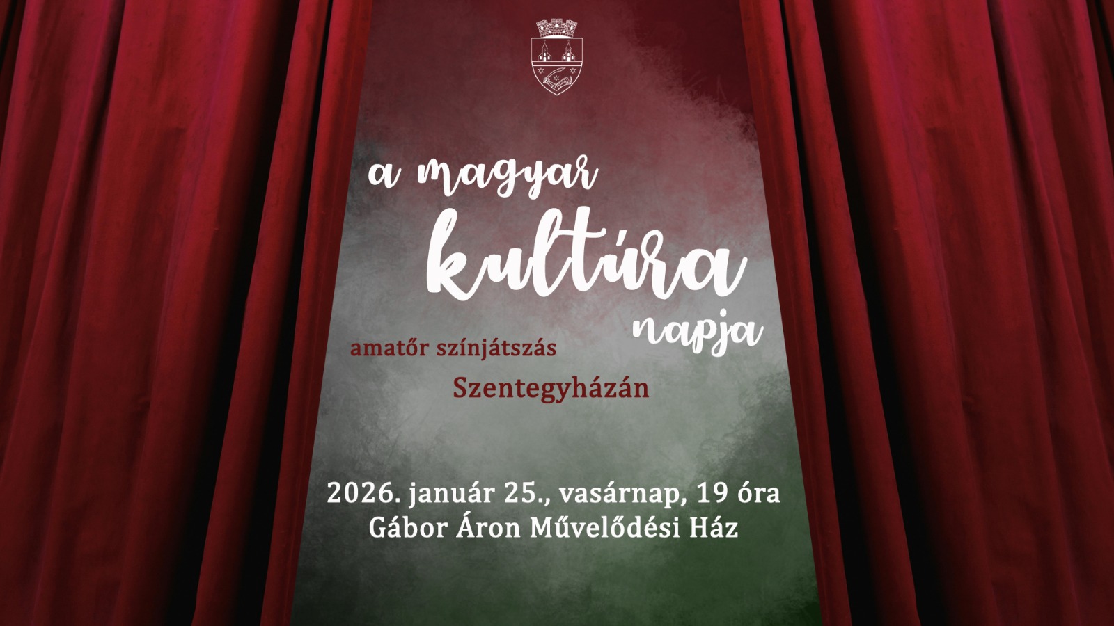 A magyar kultúra napja alkalmából idén a színjátszás kerül a középpontba Szentegyházán: vasárnap 19 órától a Gábor Áron Művelődési Házban szerveznek ünnepséget, az est során helyi amatőr színjátszók mutatják meg, mit jelent számukra a közösség, az alkotás és a magyar kultúra élő hagyománya. Fellép a Vigyorgók színtársulat és a Tamási Áron Általános Iskola tanárai.