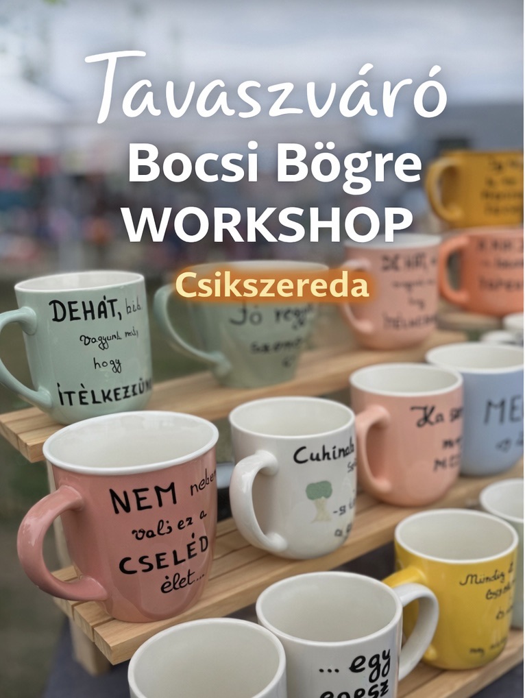 Tavaszváró workshopot szervez a csíkszeredai Rubiq Coffee kávézóban szerdán 18 órától a Bocsi Bögre márka ötletgazdája. Az eseményen az érdeklődők elkészíthetik a saját feliratos bögréjüket, majd egy kis virágcserepet ültetnek be búzával, ami néhány nap múlva már ki is hajt, és húsvéti dekorációként díszítheti az otthonokat. A belépő 100 lej, a részvételhez előzetes regisztráció szükséges, ami megtehető az esemény közösségi oldalán levő űrlap kitöltésével.