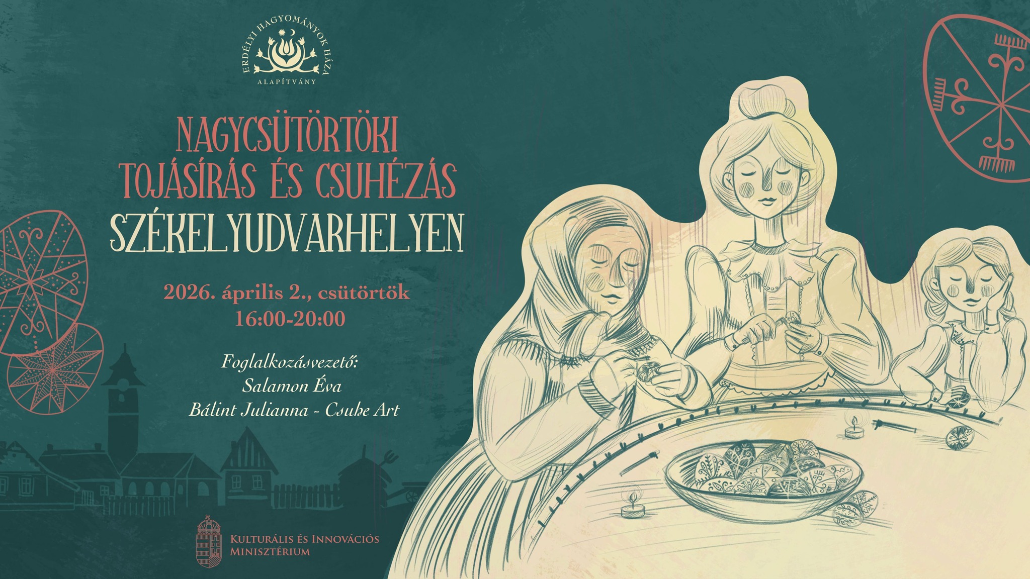 A tojásírás és a csuhézás elsajátításának lehetőségét kínálja gyermekeknek és felnőtteknek, családoknak, baráti társaságoknak csütörtökön 16 órától a Hagyományok Háza székelyudvarhelyi székhelyén (Villanytelep utca 9. szám) az Erdélyi Hagyományok Háza Alapítvány csapata. A foglalkozást Salamon Éva (tojásírás) és Bálint Julianna – Csuhe Art (csuhézás) vezetik. Az érdeklődőket arra kérik, hogy vigyenek magukkal kifújt és/vagy keményre főtt tojásokat, egyéb kellékeket a szervezők biztosítanak. A helyek száma korlátozott, jelentkezni az esemény közösségi oldalán levő űrlap kitöltésével lehet.