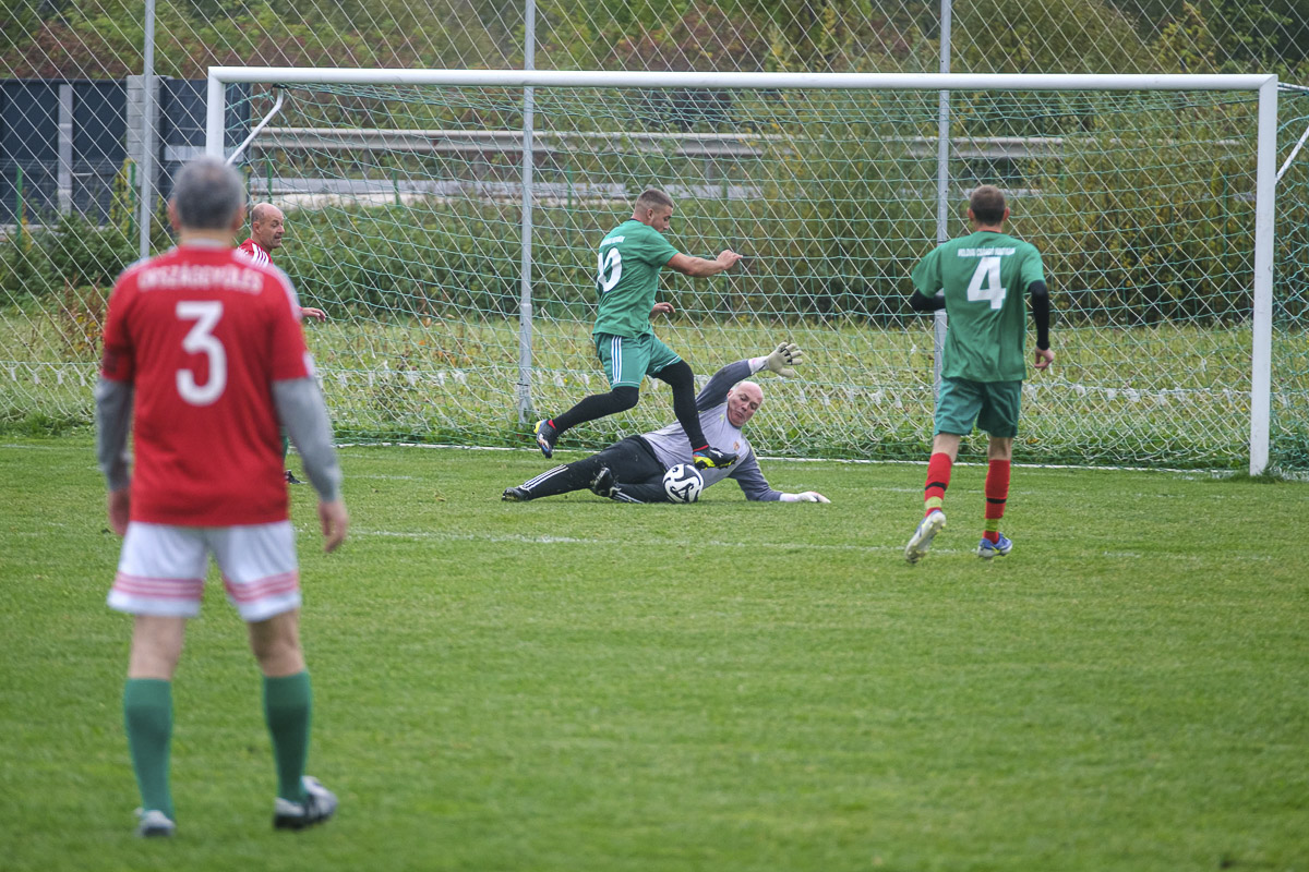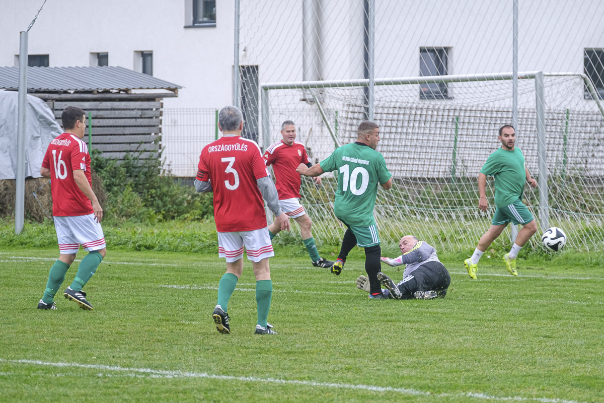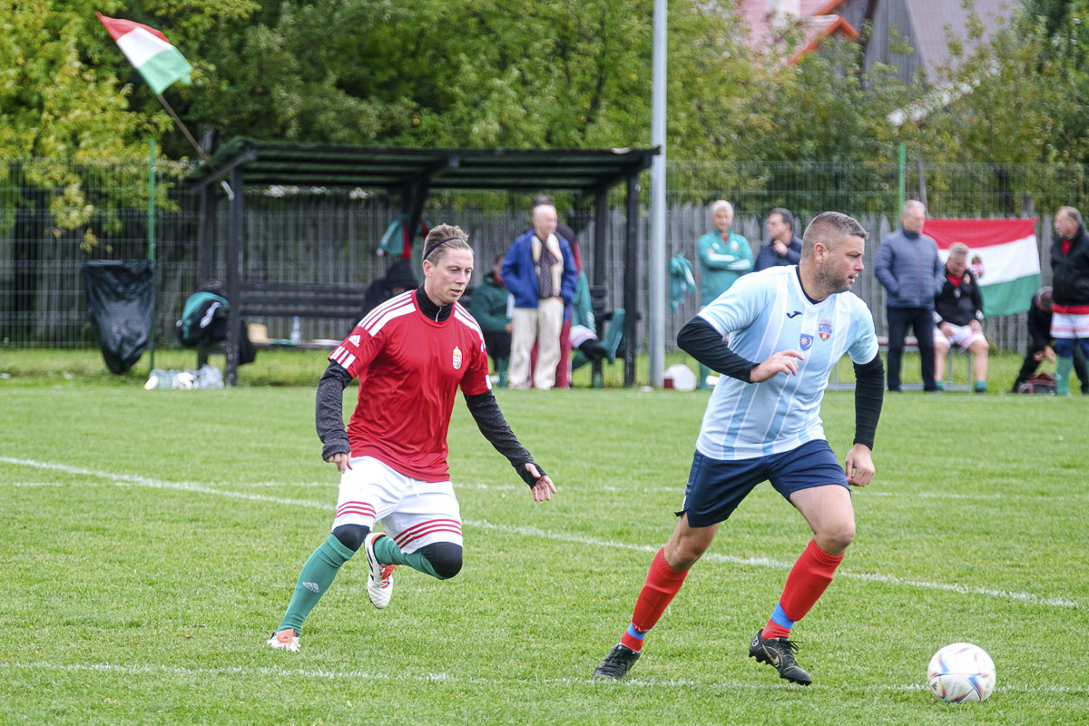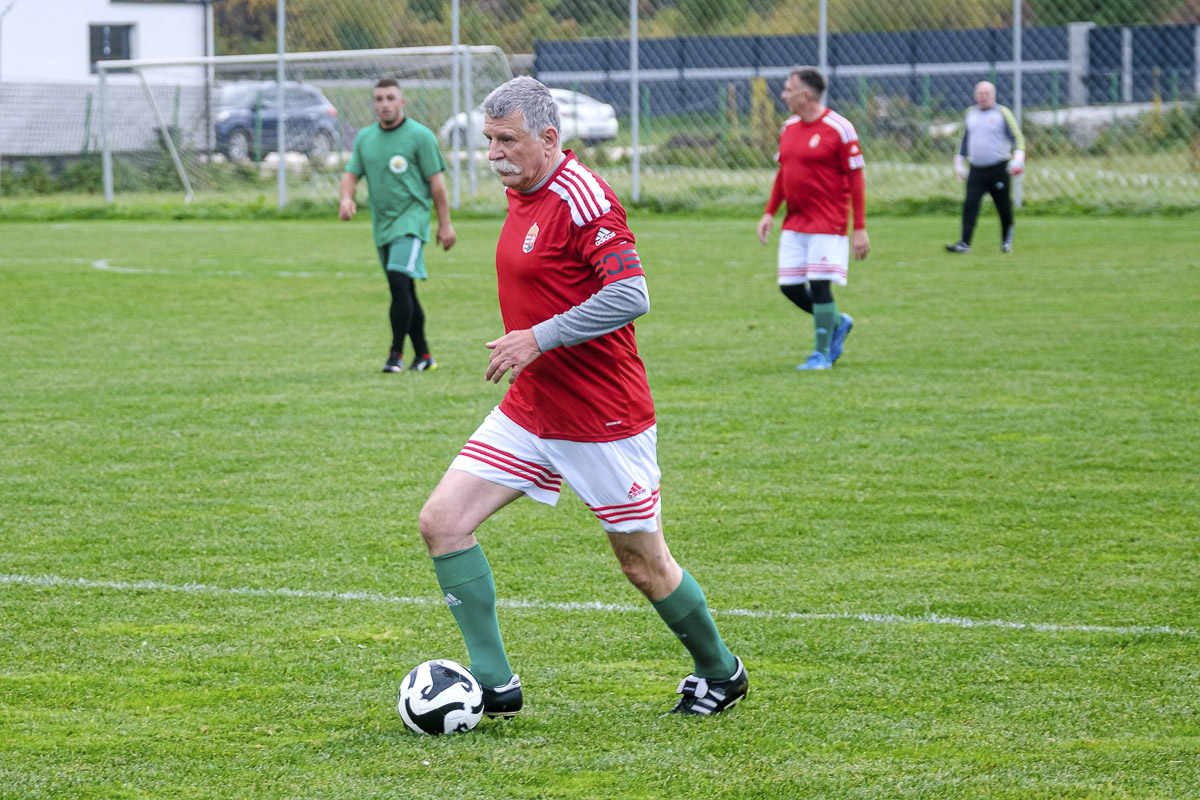 A barátságos focitornán a magyar Országgyűlés válogatottja (csapatkapitány Kövér László házelnök, képünkön), a csángó közméltóságok (csapatkapitány Polgár László elnök) és a székely közméltóságok (csapatkapitány Karda Róbert polgármester) léptek pályára.