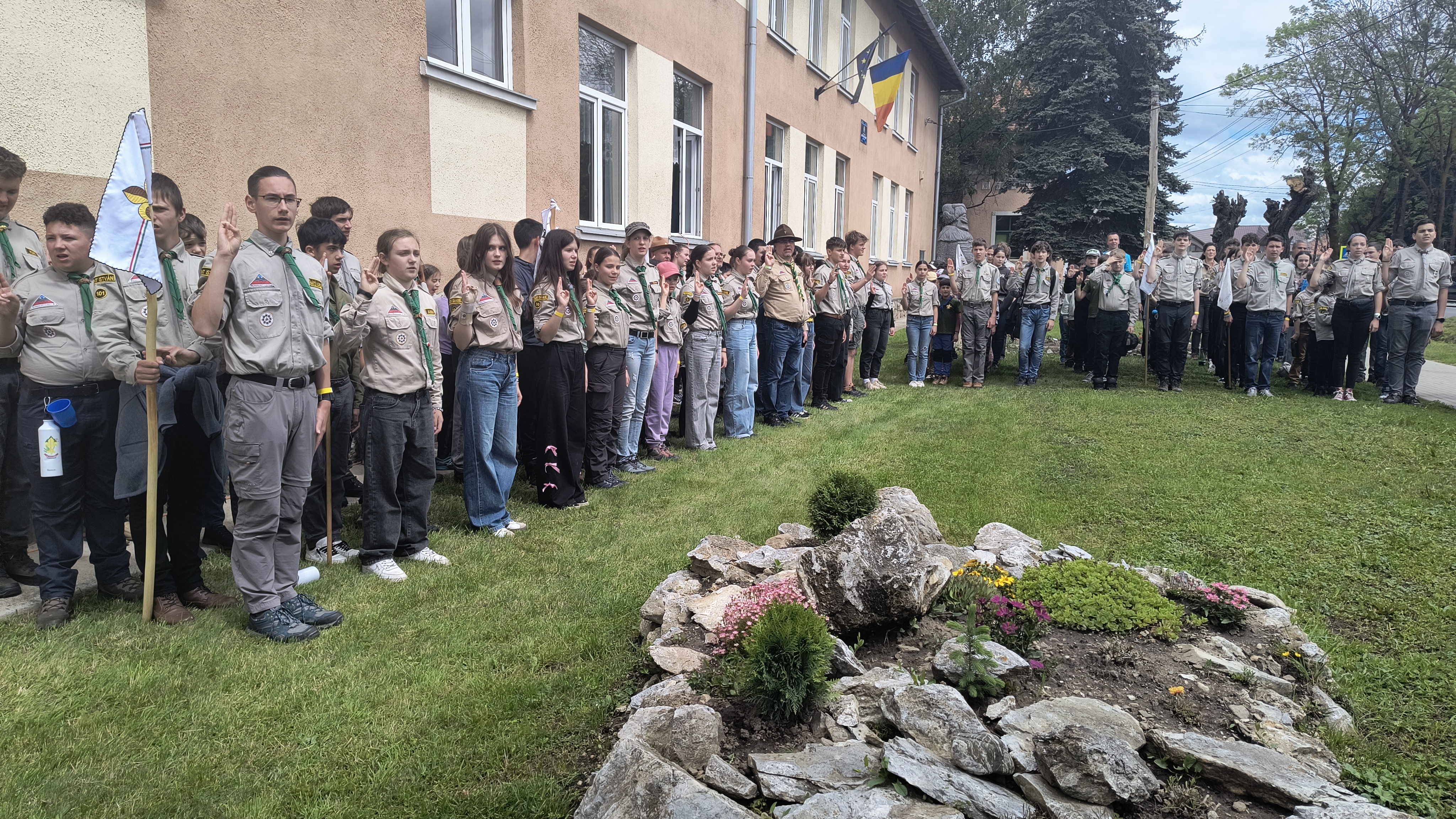 – Ez a hely számunkra olyan, mint a bölcső, Gyergyószárhegy a megszületés, az elindulás helye. Innen pár száz méterre, a ferences kolostornál volt az első tábor, ott gyűltek össze, akik a lehetőségre vártak, hogy ifjúságnevelői szervezetet alapítsanak. Itt tettek esküt az első cserkészek, az első őrsök, az első vezetők – emlékezett a kezdetekre Bálint Lajos Lóránt, a RMCSSZ elnöke.