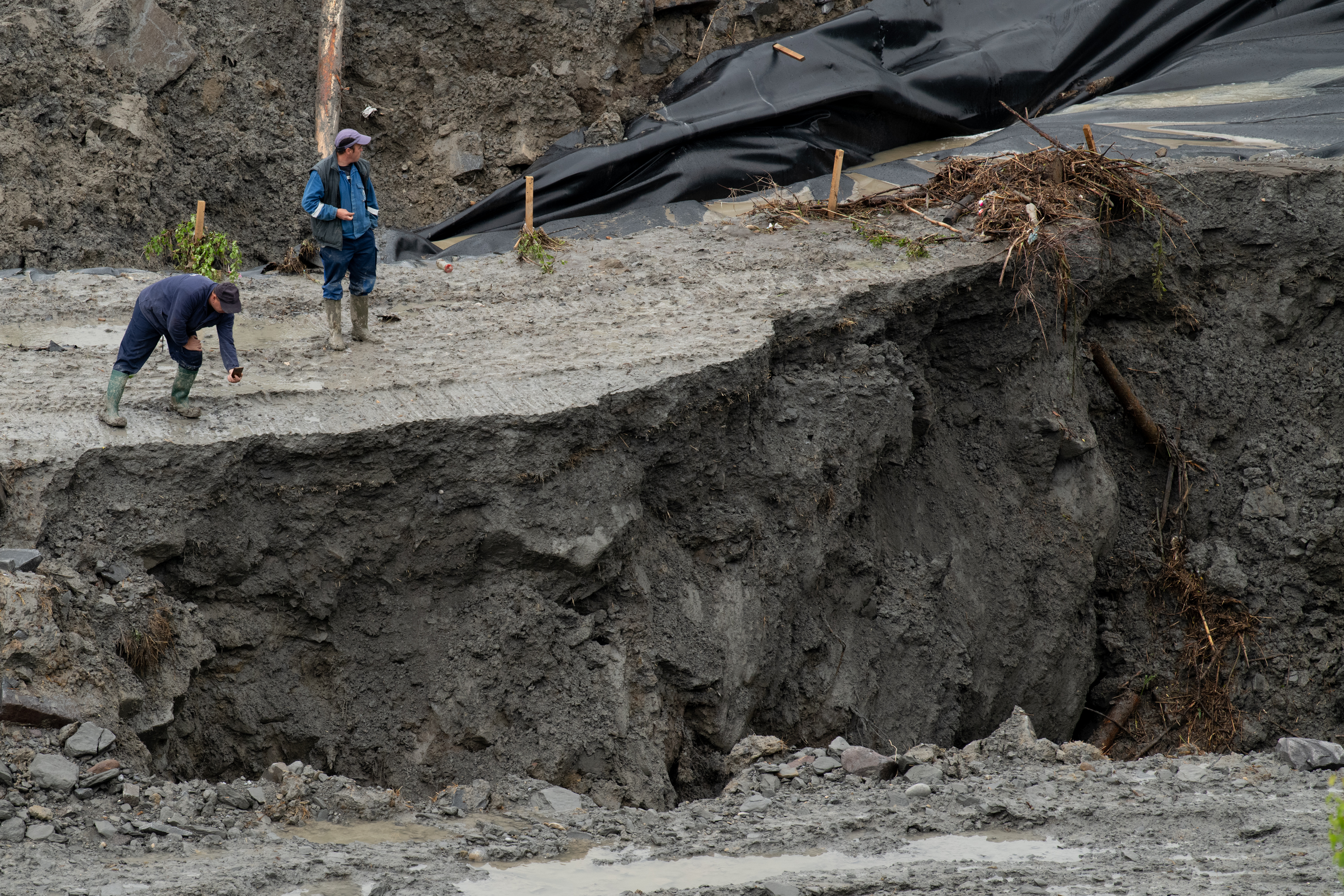 A Sószoros körüli magaslatokról hallani, ahogy a mélyben levő üregekben – ahol utat tört magának a sóbányába zúduló Korond-patak vize – visszhangot kelt a beomló talaj és sótömbök. Mivel a területen bármikor megmozdulhat a föld, és újabb omlások is megjelenhetnek, a védelmi munkálatokat teljesen leállították. Ottjártunkkor, szerdán reggel a hatóságok senkit nem engedtek a veszélyessé vált terület közelébe: a parajdi lakosok távolról, aggódó tekintettel figyelték, ahogy a két, több méter átmérőjű víznyelőben eltűnik és a mélybe zubog a megáradt patak vize, miközben a munkagépek leállítva sorakoztak a Sószoros nyugati bejáratánál.