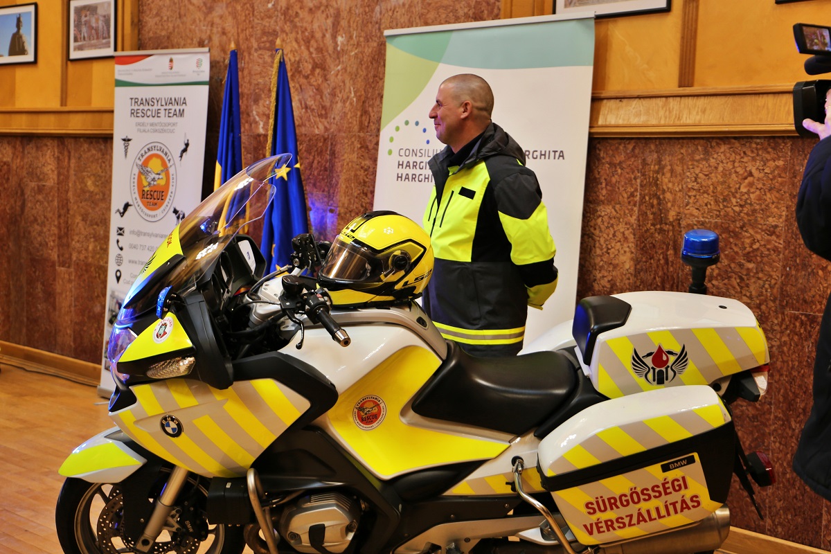 A járműveket pénteken ünnepélyes körülmények között adták át Csíkszeredában. Az eseményen Gál Gellért-István, az Erdély Mentőcsoport Csíkszék Fiókjának elnöke elmondta: több mint egyéves előkészítő munka után a Székely Vérlovagok elindulásával Románia lesz a világ ötödik olyan országa – az Egyesült Királyság, Írország, Ausztrália és Magyarország után –, ahol megalakul az önkéntes sürgősségi motoros vérszállító szolgálat és az ezt életre hívó közösség.