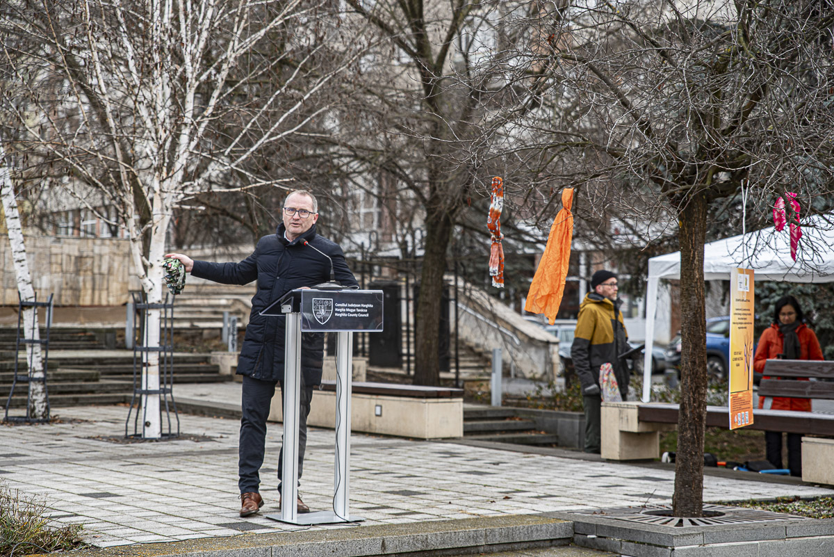 Korodi Attila, Csíkszereda polgármestere a jelen levő fiatalokhoz szólt: minden mérgező kapcsolatból ki kell lépni, segítséget kell kérni, mert a bántalmazás soha nem vezet jóra. Felhívta a figyelmet az idén Romániában bántalmazás következtében elhunyt nők emlékére kihelyezett 52 székre, amelyeken az áldozatok életkora, hátrahagyott gyermekeik száma és életük megszakításának körülményei álltak. Az áldozatok átlagéletkora 48, az elkövetőké 43 év, de a számok mögött egy ember, egy család, egy megtört közösség áll.