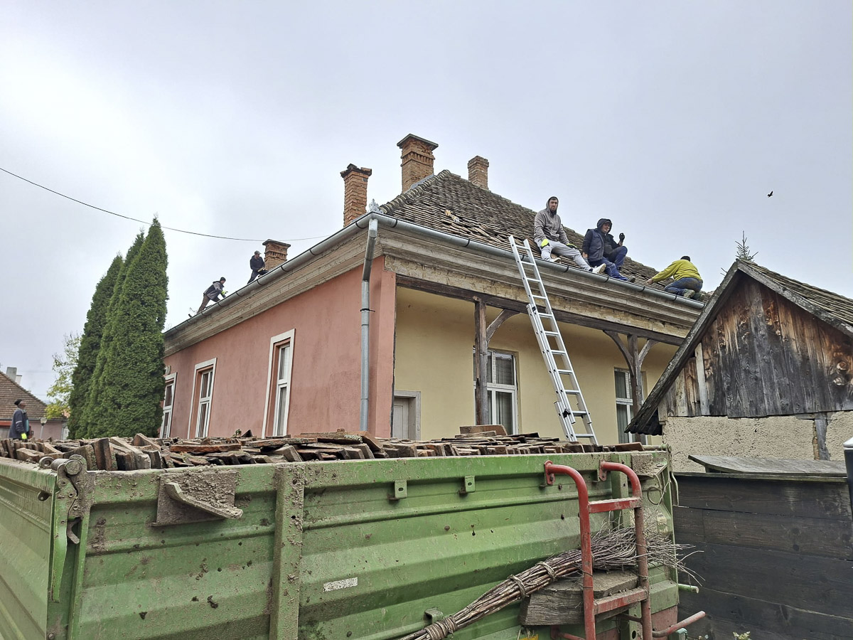 A munkálatot kalákában, az önkormányzat munkatársainak közreműködésével végezték. „Sikerült újrarakni a cserepeket, és elhárítani annak veszélyét, hogy az épület ismét beázzon, illetve a megrongálódott kémények leomoljanak.” – olvasható a Kászon község közösségi oldalán.