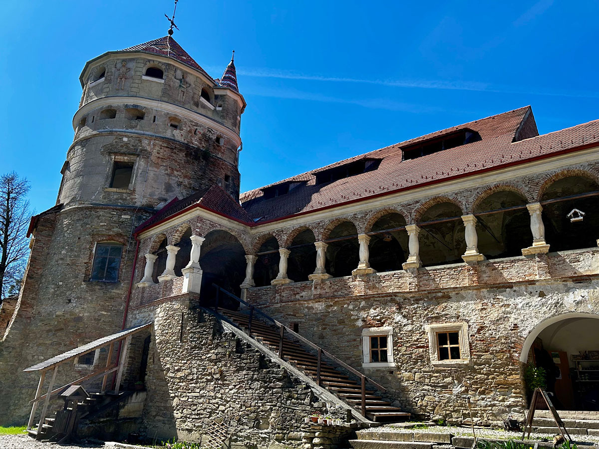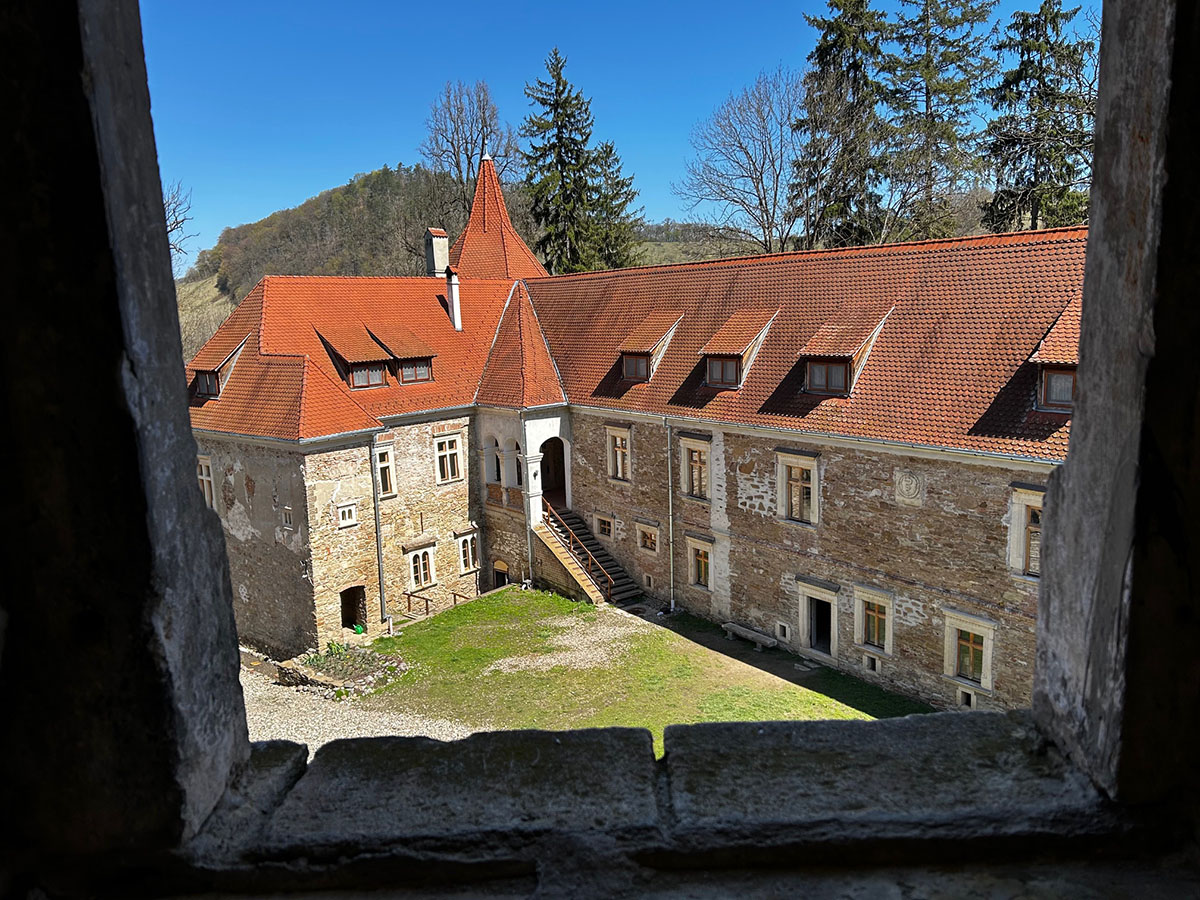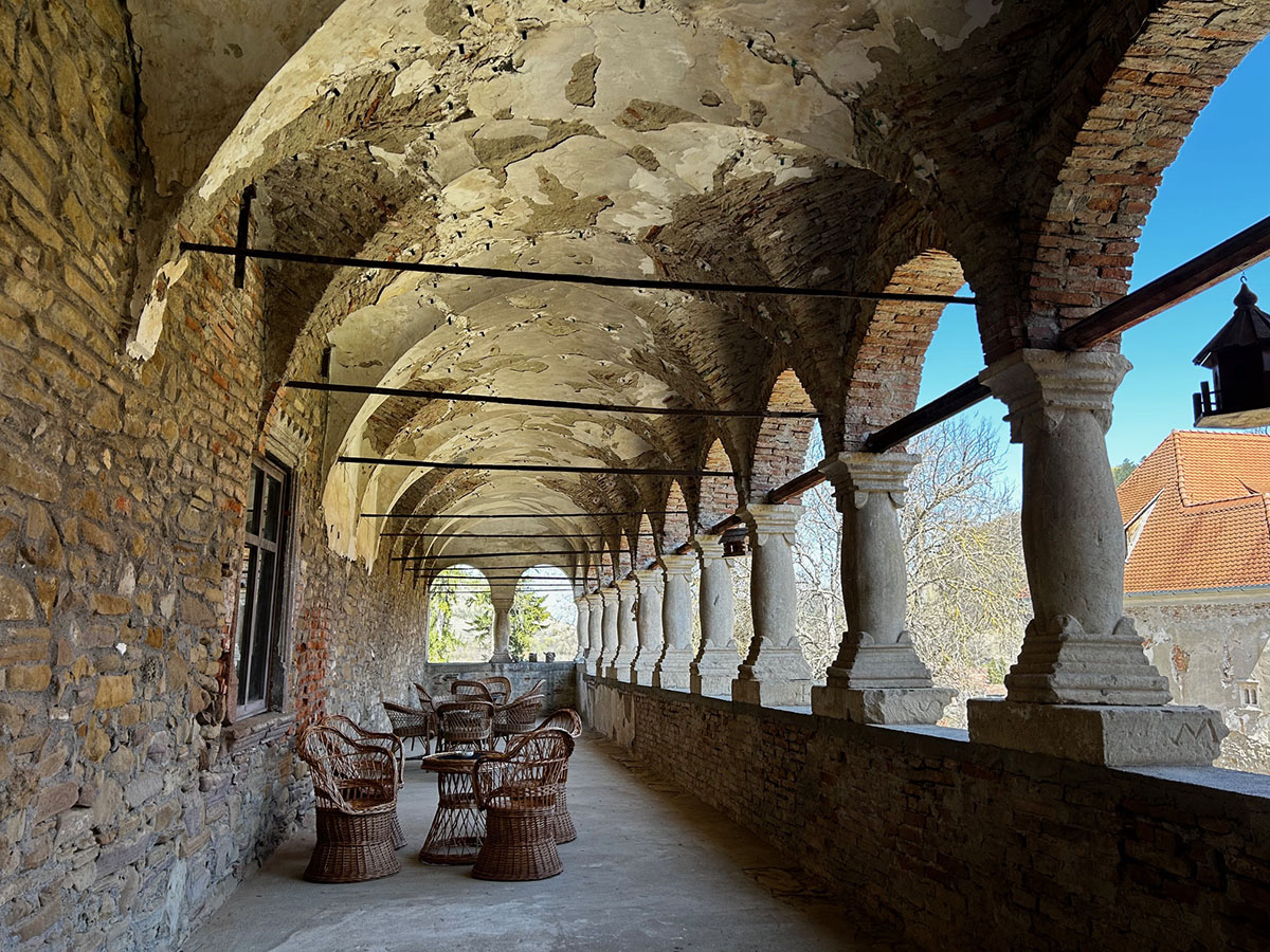 Bár a pusztulás számottevő volt, az épület java áll, látványos és egyre szebb lesz, ha folytatják a restaurálást. Képzeletemben próbáltam benépesíteni az egykori nagy fogadótermet, amit aranyos palotának hívtak, érdekes volt kitekinteni a keleti szárny végében, a saroktoronyban kialakított kis erkélyről, amely az asszonyok lakosztályához tartozott. Különleges, misztikus hangulatot áraszt a kapu mellett nyíló, késő reneszánsz jegyeket viselő kastélykápolna, az udvarról nézve valósággal középkori vendégnek éreztem magam, ha feltekintettem a több szakaszban épült ötszintes öregtoronyra, felső szintjén darabontok reliefjével, belülről pedig izgalmas volt a csigalépcsőkön felfedezni a kör alakú terek apró építészeti szépségeit. Nekem legszebb az árkádos tornác, ahová díszlépcső vezet fel. A déli falon át fut az ösvény az egykori kastélyparkba, vagyis a kertbe, ami belőle megmaradt. Ebből a szögből is nagyon látványos a magas falakkal övezett várkastély.