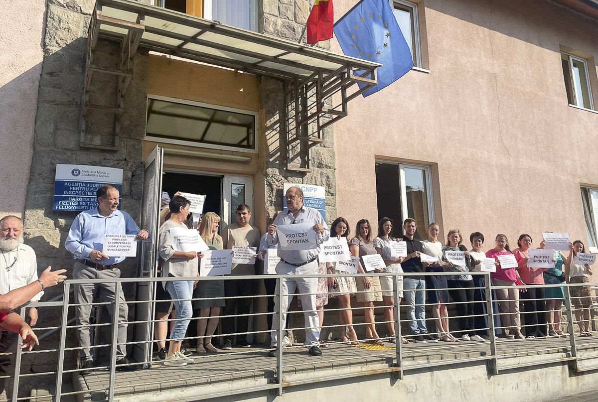 Spontán tiltakozásba kezdett a Hargita Megyei Nyugdíjpénztár alkalmazottainak többsége tegnap délelőtt az intézmény székhelye előtt Csíkszeredában, elégedetlenségüknek adva hangot a kormány azon szándéka miatt, hogy csökkentse a dolgozók, különösen a közszolgálati tisztviselők jövedelmét – tudtuk meg. „Nem a nyugdíjpénztárak alkalmazottai destabilizálják Románia gazdaságát” és „A pótlékok nem kiváltságok, hanem törvényes kompenzációk az elvégzett munkáért” – közölték a tüntetők által papírlapokon felmutatott jelszavak.