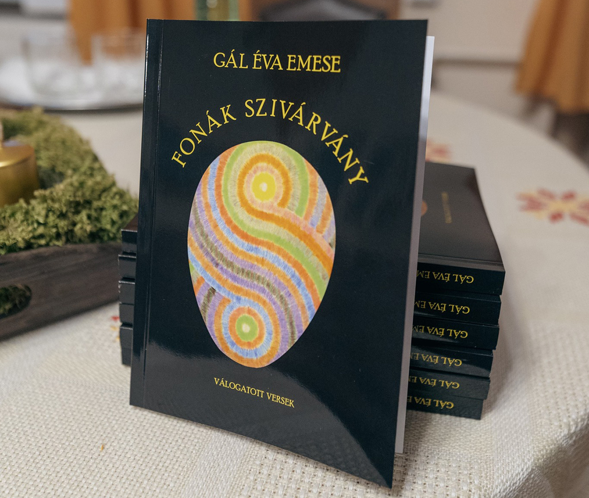 Dr. Vincze Csilla igazgató a Városi Könyvtár oltalma alatt – önkormányzati támogatással –, a szobrász, költő, özvegy Burján Gál Emil engedélyével, Gál Éva Emese születésének 70. évfordulója tiszteletére az F&F kiadó gondozásában megjelent ékszert tesz elénk, amelynek borítója tragikusan elhunyt lányuk, Enikő munkája.