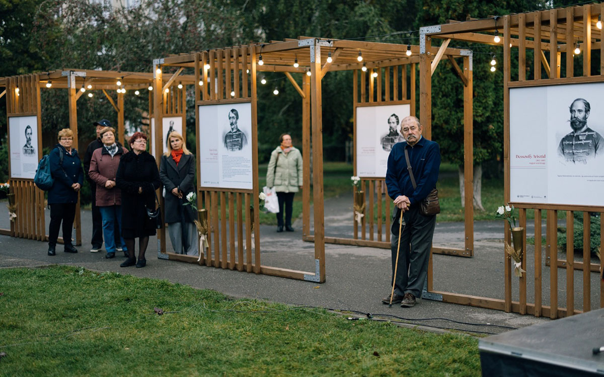 Rendhagyó módon a Dávid Ferenc téren hajtottak fejet a székelyudvarhelyiek a tizenhárom aradi vértanú kivégzésének emléknapján. Simon Mária Tímea, a Művelődési Központ igazgatója elmondta: az installációt idén azért váltották fel az áldozatok portréi egy-egy ismertető szöveggel, mert így emberközelibbé tehetik a megemlékezést.