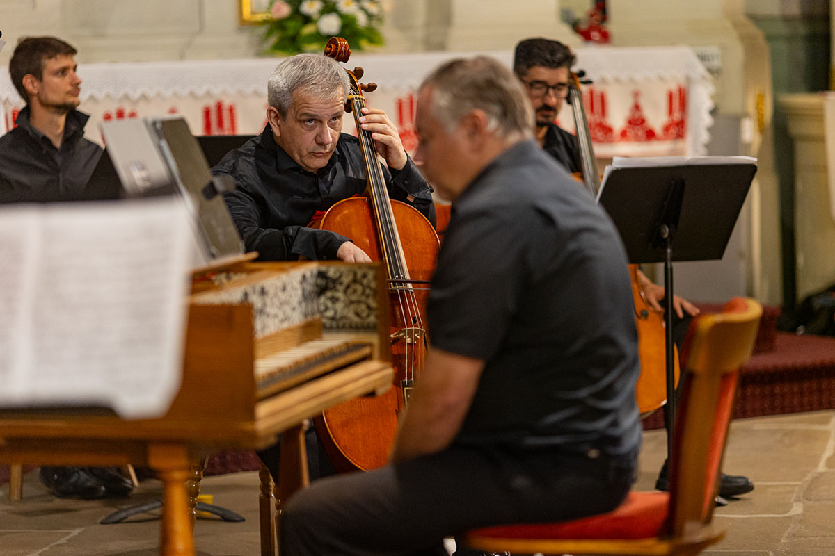 Ám amikor klasszikus zenéről beszélünk, nem téveszthetjük szem elől a tényt, hogy egészen a 20. századig a zenehallgatás egyetlen módja az élő zenés formátum volt. Ebben a tudatban érdemes hallgatni és értékelni a bachi hagyatékot és a régizenét általában. Ezeket ugyanis nem a 21. század zenehallgatási szokásaihoz igazították, mint a kortárs zene legnagyobb részét, hanem a 17–18. század „koncertkultúrájához” – azaz az élő jelleghez. Éppen ezért lehetetlen önmagában értékelni egy-egy barokk zeneművet, szólamot vagy zenészt. A darabok nem maradnak meg az „auditív” alkotás szűk medrében – előadó-művészetként, performanszként működnek. A pillanatnyi, megismételhetetlen harmónia a hallható-látható-érezhető között, az előadó-hang-néző spontán létrejövő kapcsolatában születik meg. A hallgatóság a zene megfoghatatlan dimenziójában találja magát, amelyben minden egyszerre van jelen: a közös lélegzetvétel, az ösztönös ritmusra-rezdülés, a falakról lepattanó visszhang, a hangszerek látványa. A zenészek előadóművészek, nagy gesztusokkal és finom mimikával követik a hangot, mintha nem ők irányítanák a hangszert, hanem a hangszer őket. A szólamaik precízen betanultak, mégsem a rutinos játék érződik rajtuk, hanem a pillanatnyiság súlya: minden egyes hangnak jelentősége van, és csak a mély átszellemülés állapotában válnak lejátszhatóvá. Kígyóbűvölőkre emlékeztetnek – csakhogy egyszerre töltik be a bűvész és a kígyó szerepét, egyszerre bódítanak és bódulnak el saját hatásuktól. Zenélés közben a mozdulataikban és játékukban reflexszerűség és performativitás keveredik, mélyen személyes, de közben az előadásmód része minden. A hatás viszont nem az egyes zenészek játékából, hanem az összjátékból születik. Az egyéni átélés rétegére egy közös, zenekari átélés tevődik rá. És erre egy harmadik: a közönségé, amely mindkét előadás esetében, de kiváltképp a kegytemplomban szakrális élménnyé is válik. Még a környezet, a bachi zenéhez illő templomi tér is ennek a játéknak a része.