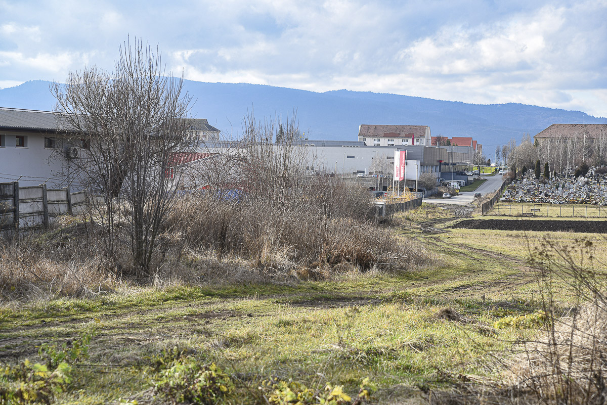 A csíkszeredai Nest bevásárlóközpont és a Kalász negyedi temető környéke. Kétsávos, biciklisávos út épülne járdával és közvilágítással ott, ahol most sár és sikátor van Fotó: László F. Csaba