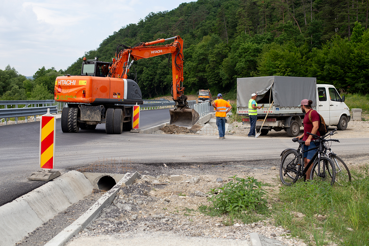 A besztercei kivitelező, a Far Foundation szakcég gyorsan haladt eddig az útépítési munkálatokkal: Décsfalva végétől Székelykeresztúrig már a kész bicikliúton lehet közlekedni a 137-es megyei út mentén, a Székelyudvarhelyhez közelebbi részeken riportunk írásakor, a múlt héten még a bicikliút alapozásán és az aszfaltozási munkálatok előkészítésén dolgoztak. Egy kisebb szakaszon a bicikliút Bögöz és Décsfalva között is elkészült, ottjártunkkor friss aszfaltréteg volt rajta. Felsőboldogfalván még a járdák és a kapubeállók kiépítésén dolgoztak, ezzel egy időben alapozták a bicikliutat is. Az új aszfalt könnyen járható: kerékpárosként igazi felüdülés, hogy nem kell tartani a kamionok abroncsai által préselt aszfalthullámoktól, és az átjárókhoz épített bukkanók sem meredekek, mind autóval, mind biciklivel könnyedén át lehet hajtani rajtuk. A bicikliúton hasonló a helyzet: az aszfalt egyenletesen van leterítve, nem tapasztalható az a jelenség, ami a város bejáratánál a Szívek sétányára jellemző, hogy hullámzó az aszfalt és ráz. Viszont az olyan önjelölt kalandoroknak, mint mi is, akik átadás előtt használatba veszik a bicikliutat, érdemes lenne jelezni, hogy hol friss az aszfalt, mivel laikusok számára nem mindig egyértelmű, hogy mire nem szabad ráhajtani.