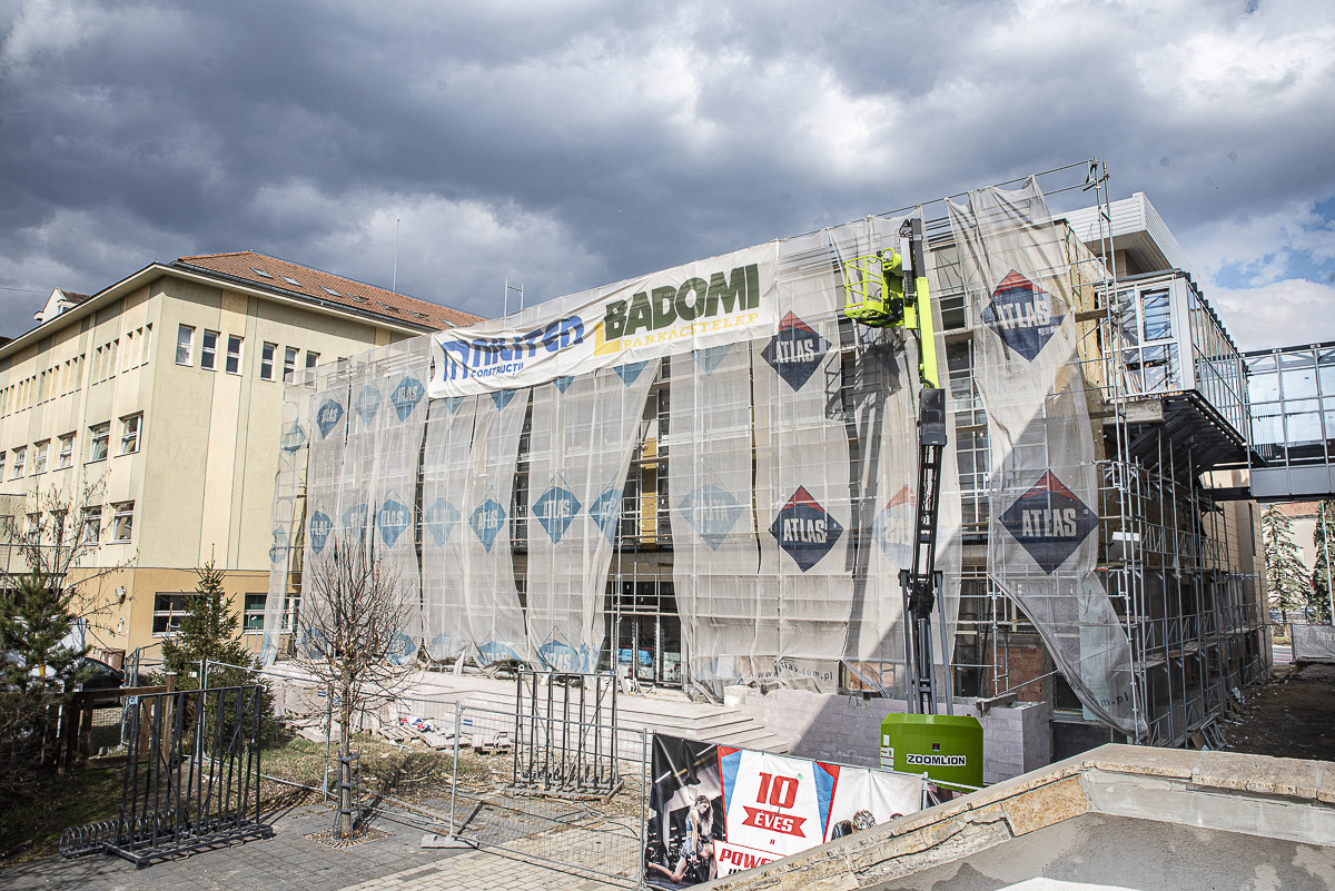 – Jelenleg az üvegfal befejezésén dolgoznak a Művészetek Házához, illetve az iskolához kapcsolódó folyosóknál. Ezeknek a lezárásával pedig az épület szerkezete teljesen zárttá válik. Az emeleten a belső munkák előrehaladott állapotban vannak: a falakat előkészítették festésre, a következő időszakban az álmennyezet kerül a helyére a világítótestekkel és a szellőzőberendezésekkel együtt. A sportteremben a sportpadló lerakása a kivitelezés végső szakaszában történik majd