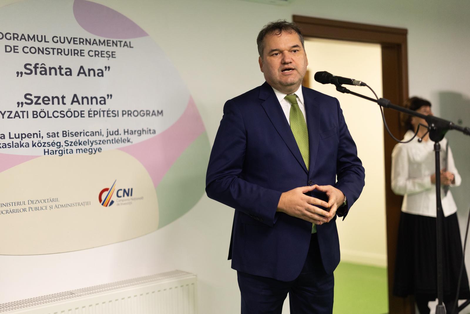 Cseke Attila fejlesztési miniszter beszédében elmondta, országosan 241 bölcsőde építését tervezik a program keretében, ebből tizenegy Hargita megyében valósul meg. A megyében a székelyszentléleki az első, amelyet átadhattak. A 241-ből 180 esetében már elkezdték a munkát, a többi tervezés alatt áll. A fejlesztési miniszter azt is elmondta, hogy a tizenegy Hargita megyében megépülő bölcsőde mintegy ötszáz, hároméves kor alatti gyermek számára biztosít majd helyet.