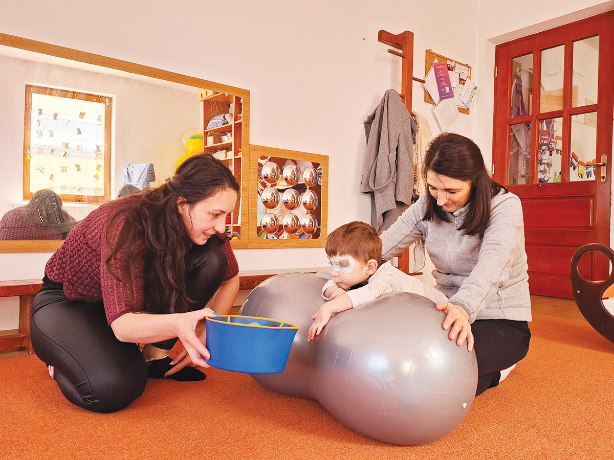 Mindjárt háromesztendős kisfiú és édesanyja tartózkodik Beáta társaságában a székelyudvarhelyi, Kossuth Lajos utcai foglalkoztatóközpont egyik termében. Márk egy speciális labdán hasal, édesanyja színes játékokat tartva elébe, csábítja, hogy lábával elrugaszkodva kézbe vegye a kincseket. Ha megkaparintja, hármuk öröme az egekig ér.