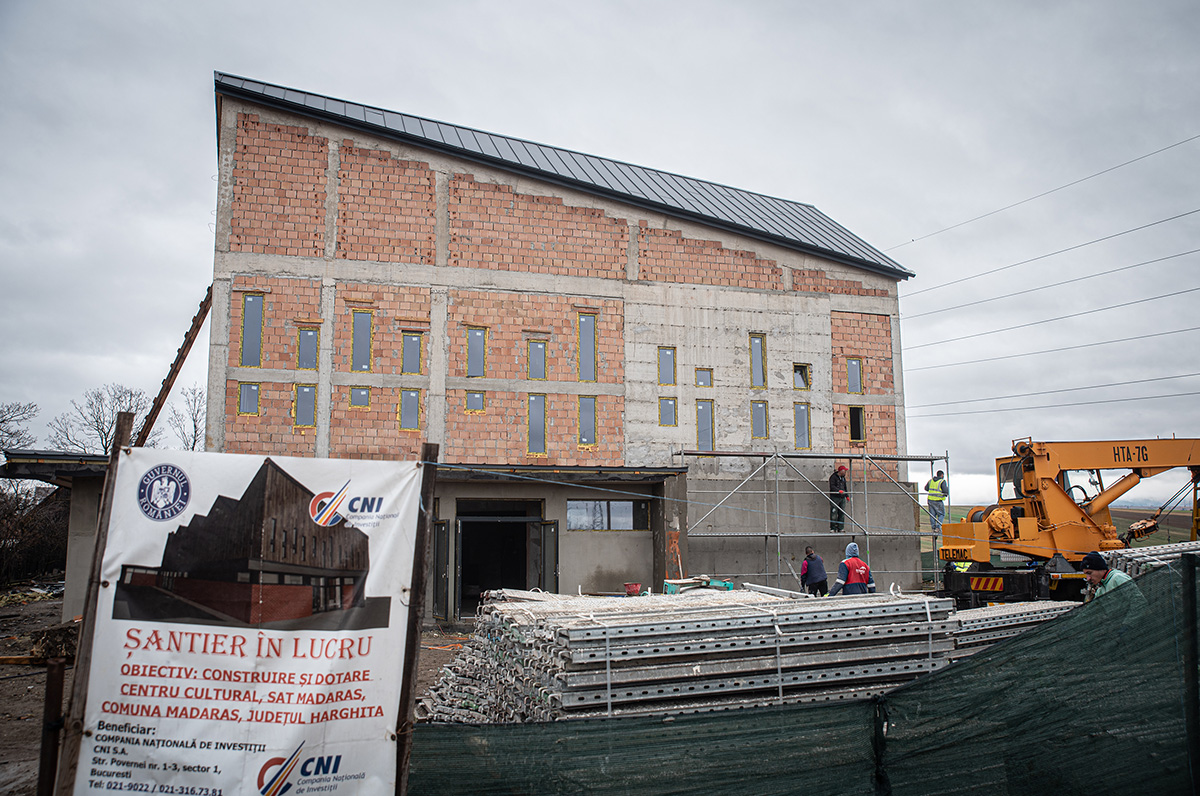 Jelentős előrehaladást mutat a csíkmadarasi kultúrház építése: jelenleg a külső és belső hőszigetelésen, illetve a falak simításán dolgozik a kivitelező. Hamarosan megkezdik a belső korlátok és az álmennyezet beszerelését. A beruházás 70 százalékát már elvégezték.