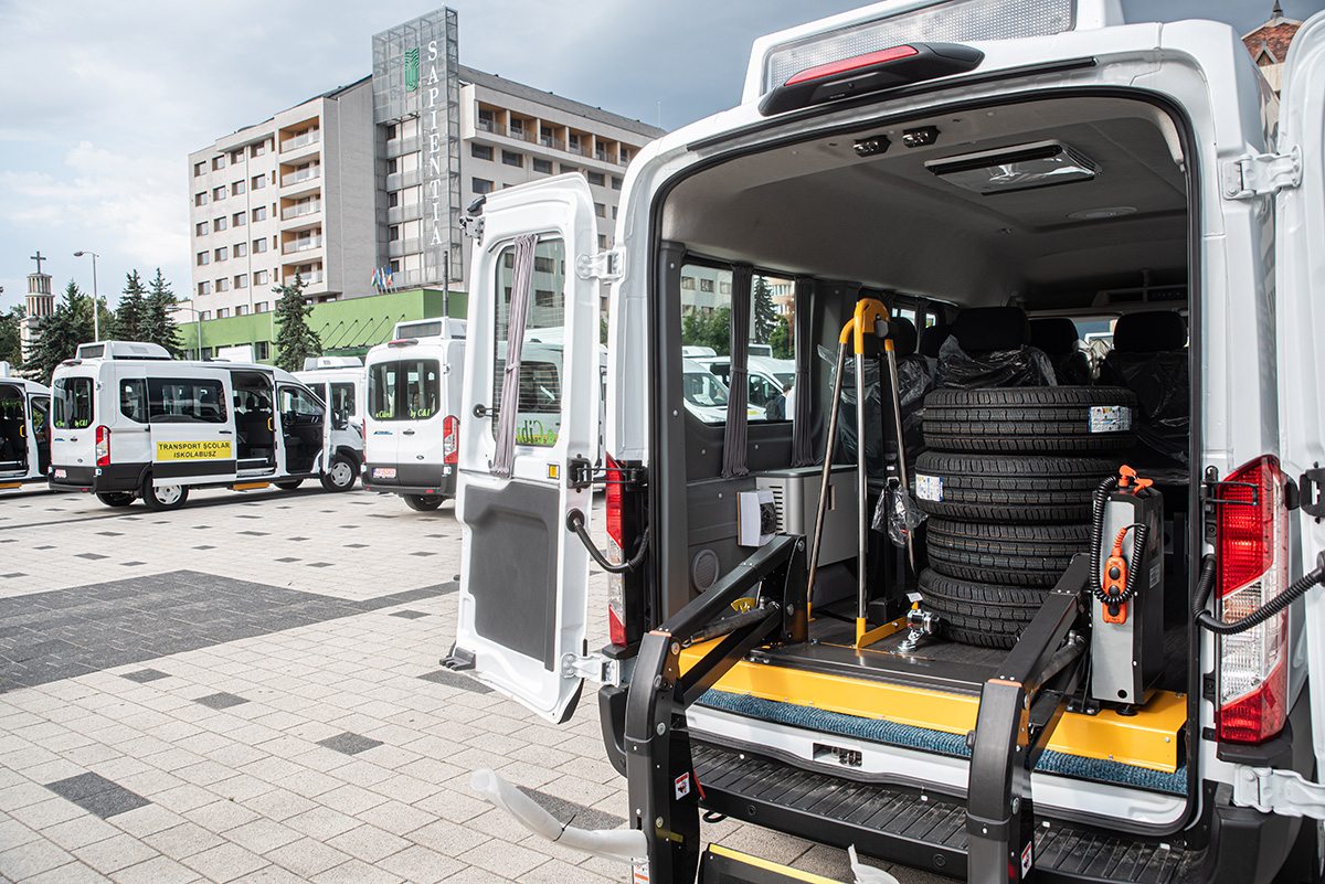 Tizenhat darab 8 + 1 férőhelyes elektromos iskolabuszt adott át Hargita Megye Tanácsa az Országos Helyreállítási Terv (PNRR) program révén helyi önkormányzatoknak csütörtökön Csíkszereda Szabadság terén. Az összesen 36 millió lej értékű beruházás részeként 54 elektromos iskolabuszt vásároltak, amelyek közül 39 darab 8 + 1 férőhelyes, tizenöt darab pedig 16 + 1 férőhelyes. Az iskolabuszok 1600 gyerek szállítását biztosítják megyeszerte. A programban külön figyelmet fordítottak a hegyvidéki, távoli, elszigetelt településekre.