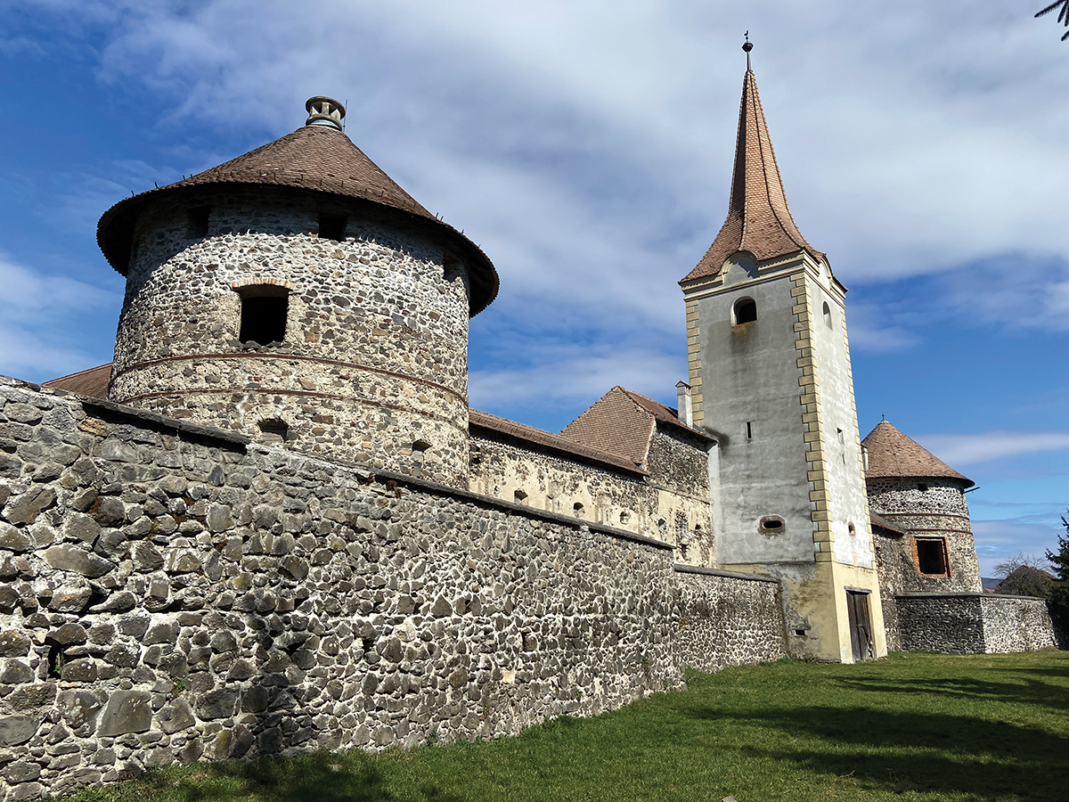 De még azelőtt természetesen megnéztük, amiért odamentünk, amelyről legalább tudtunk néhány dolgot. A várkastély a falu központjában áll, a 17. századból származó négy sarokbástyás, magas falak övezte kastélytípus jeles példájaként jegyzi a szakirodalom. Története több nemesi családhoz is kötődik, Sükösd György udvari tanácsos, kapitány kezdte el építeni egy 16. századi udvarház helyén, aztán a bethleni gróf Bethlen család tulajdonába került, nekik köszönhető a templomtoronyra emlékeztető, többszintes kaputorony, amely ma is áll, homlokzatára került fel Bethlen Sámuel kígyós címere. Az épületek a várfal belső oldalához kapcsolódtak, ezekből csak kevés maradt meg.